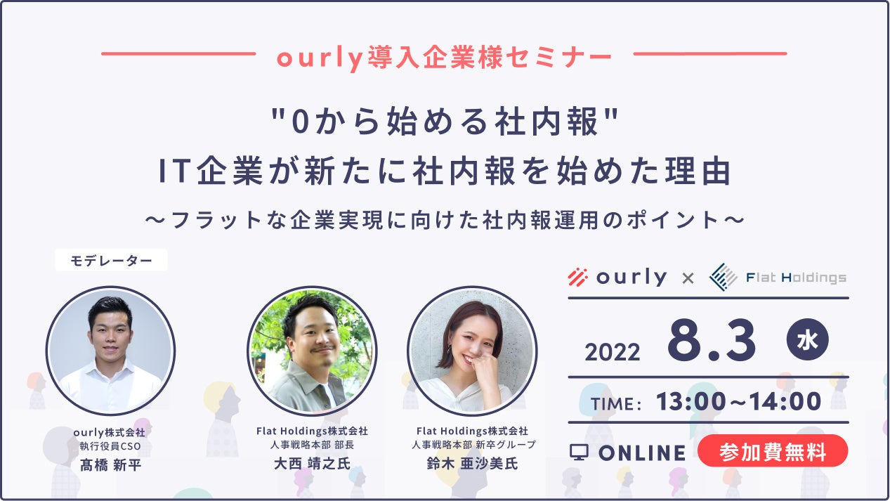 Flat Holdings社とourlyでは、アンバサダープログラムの一環として8月3日(水)に無料ウェビナーを開催します。