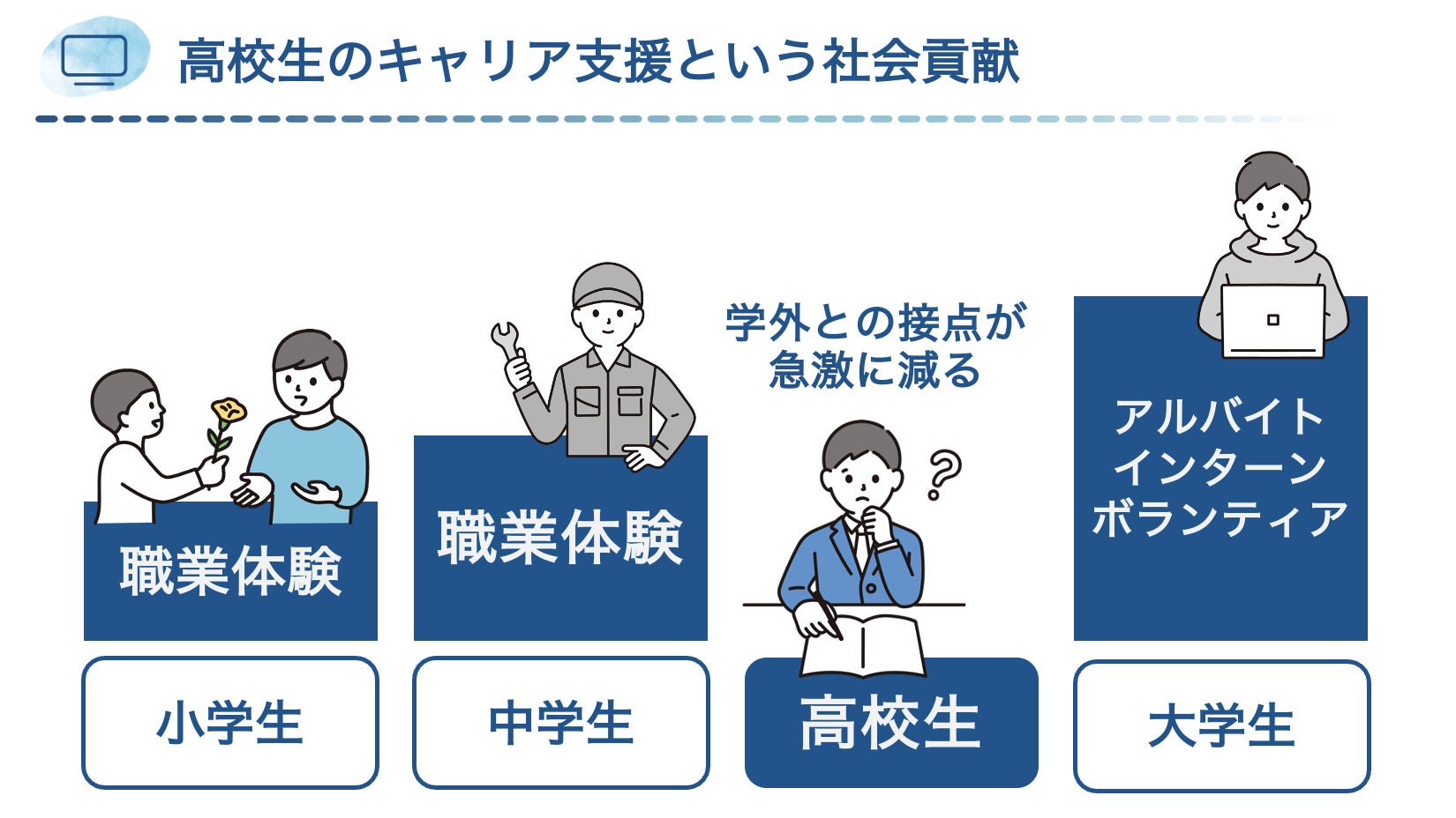 →唯一高校生だけ職業体験やインターンなどがほとんどない年代のキャリア支援となる