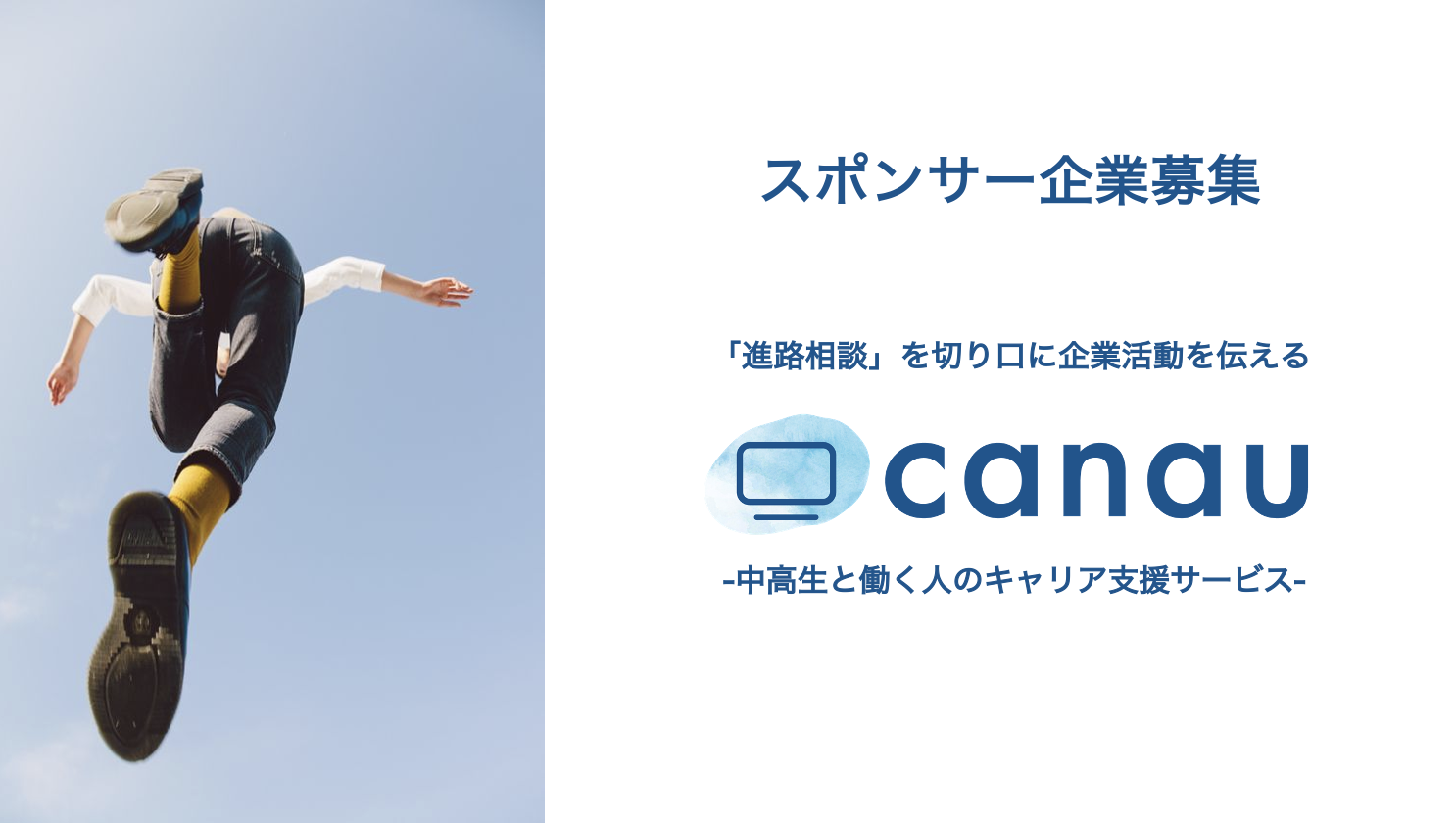 2022年4月27日、株式会社すみか(北海道札幌市)は中高生と働く人のキャリア支援サービス「canau」に参画するスポンサー企業の募集を開始しました。