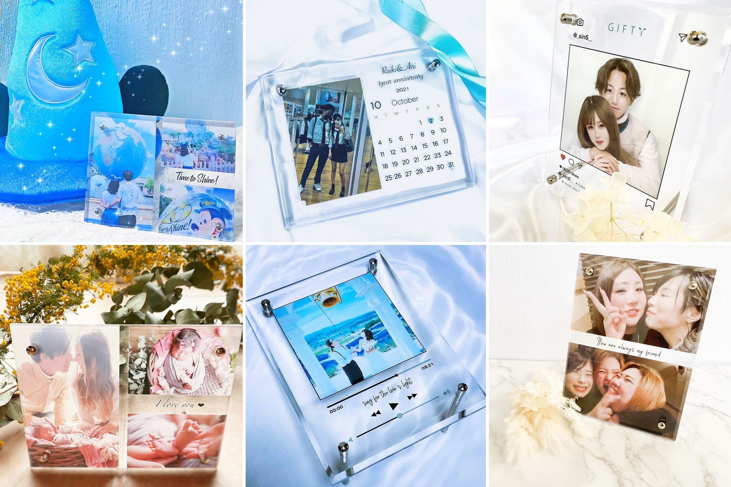 GiFTYはアクリルやガラスに思い出のお写真を閉じ込めて、大切な人へプレゼントできるオーダーメイドサービスです。バルーンやプリザーブドフラワーギフト、ホテル装飾なども対応しております。カップルの記念日プレゼントや、結婚、出産祝い、長寿祝いはもちろん、ご自宅のインテリアとして多方面で選ばれております。