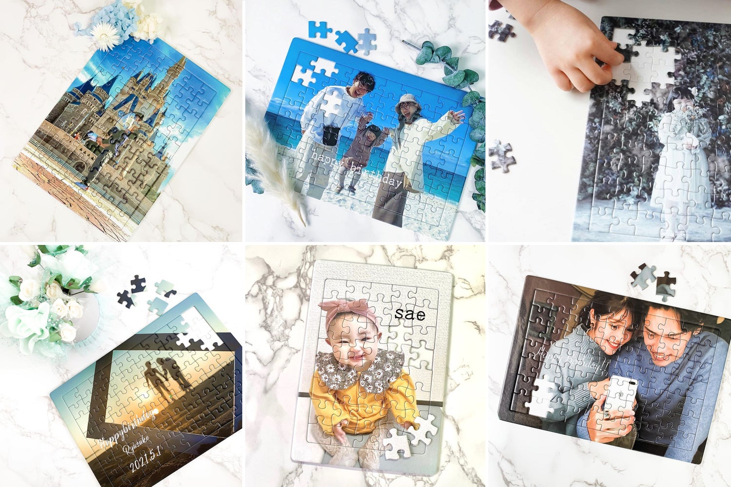 お好みのお写真とメッセージを組み合わせてプリントできます。ピースを合わせていくと大切な思い出が蘇る。カップルや家族とパズルで楽しめること間違い無しです。