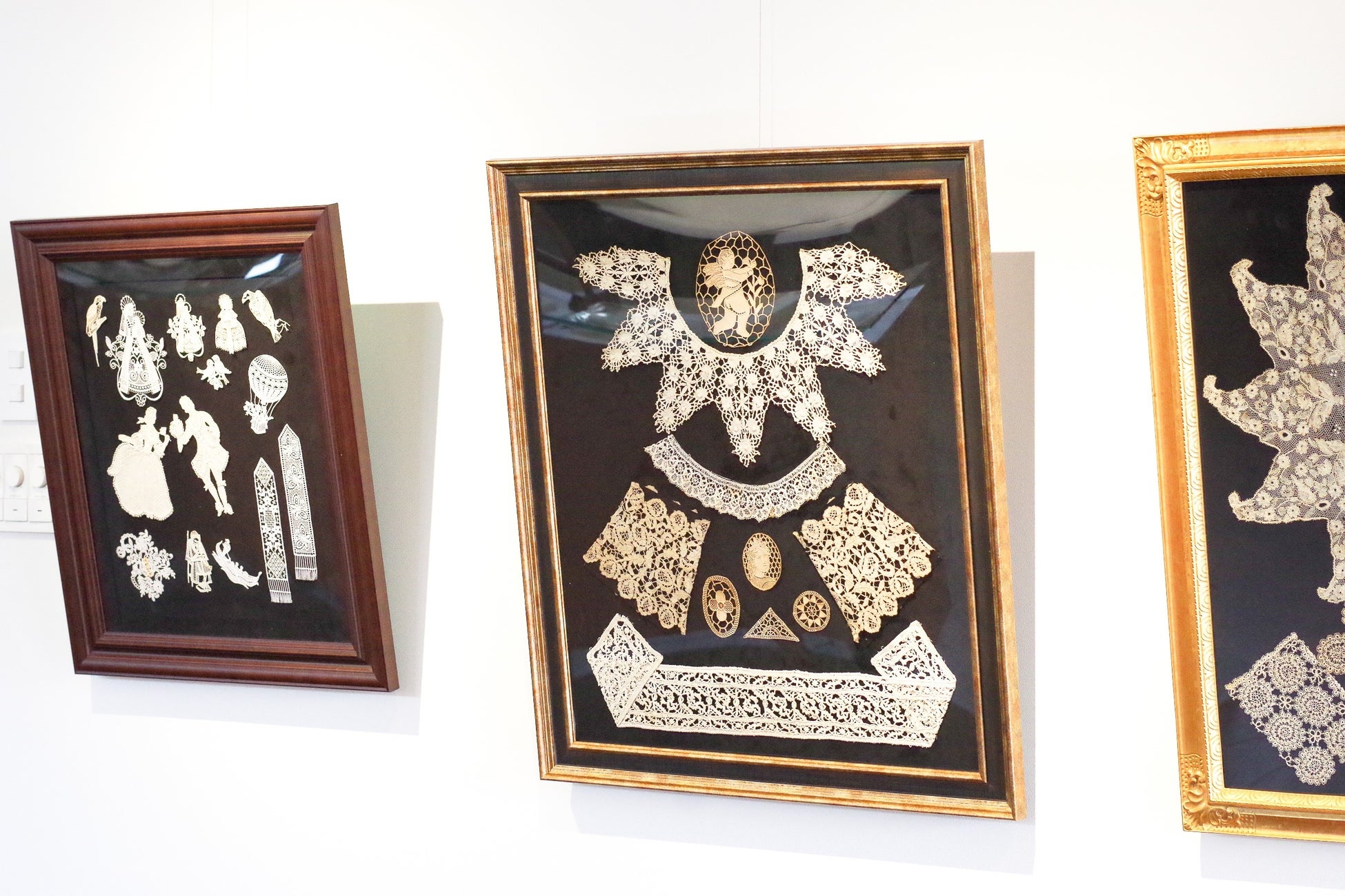 当館3階では、様々な加工を施したレースの魅力を、手に取って見ていたただけるように展示しています。