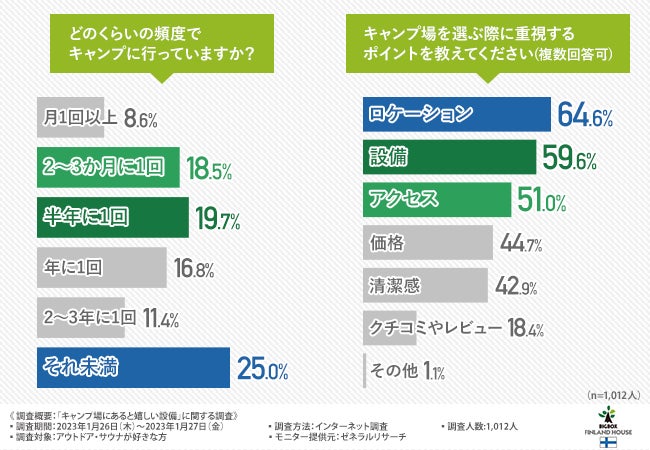 キャンプ場を選ぶ際のポイントは『ロケーション』と『設備』!半数以上の方が『サウナ』があったら嬉しいと回答!