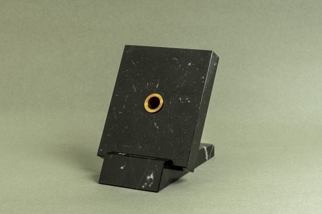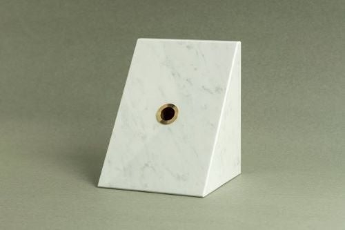 〘重厚感と安定感をそなえた、堂々とした三角形。真鍮の筒が外から見えないことで石から花が翔び立つような印象がより鮮明に〙