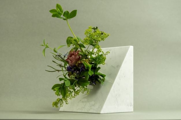 高級大理石から花が飛び出すように映える3D花器新商品【石翔花】翔び立つ!!