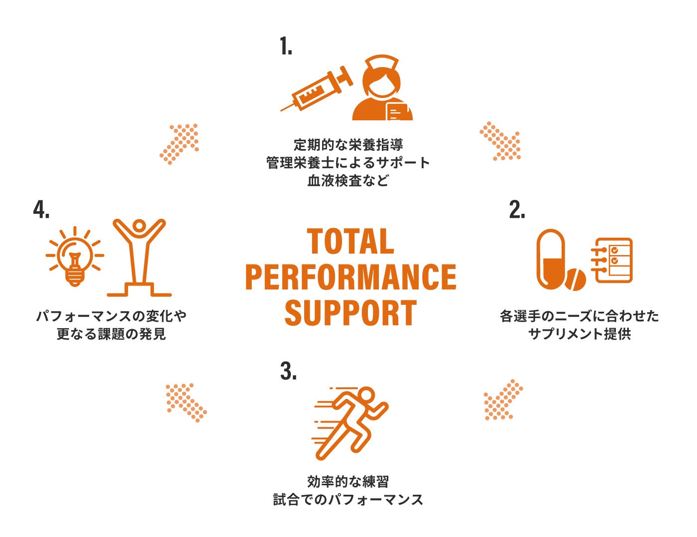NORMが高校部活生に提供するTOTAL PERFORMANCE SUPPORTでは、短期的な栄養サポートだけではなく、中長期的な部活生のベースアップやパフォーマンスアップを生む、サイクルを生み出すことを目的に実施いたします。