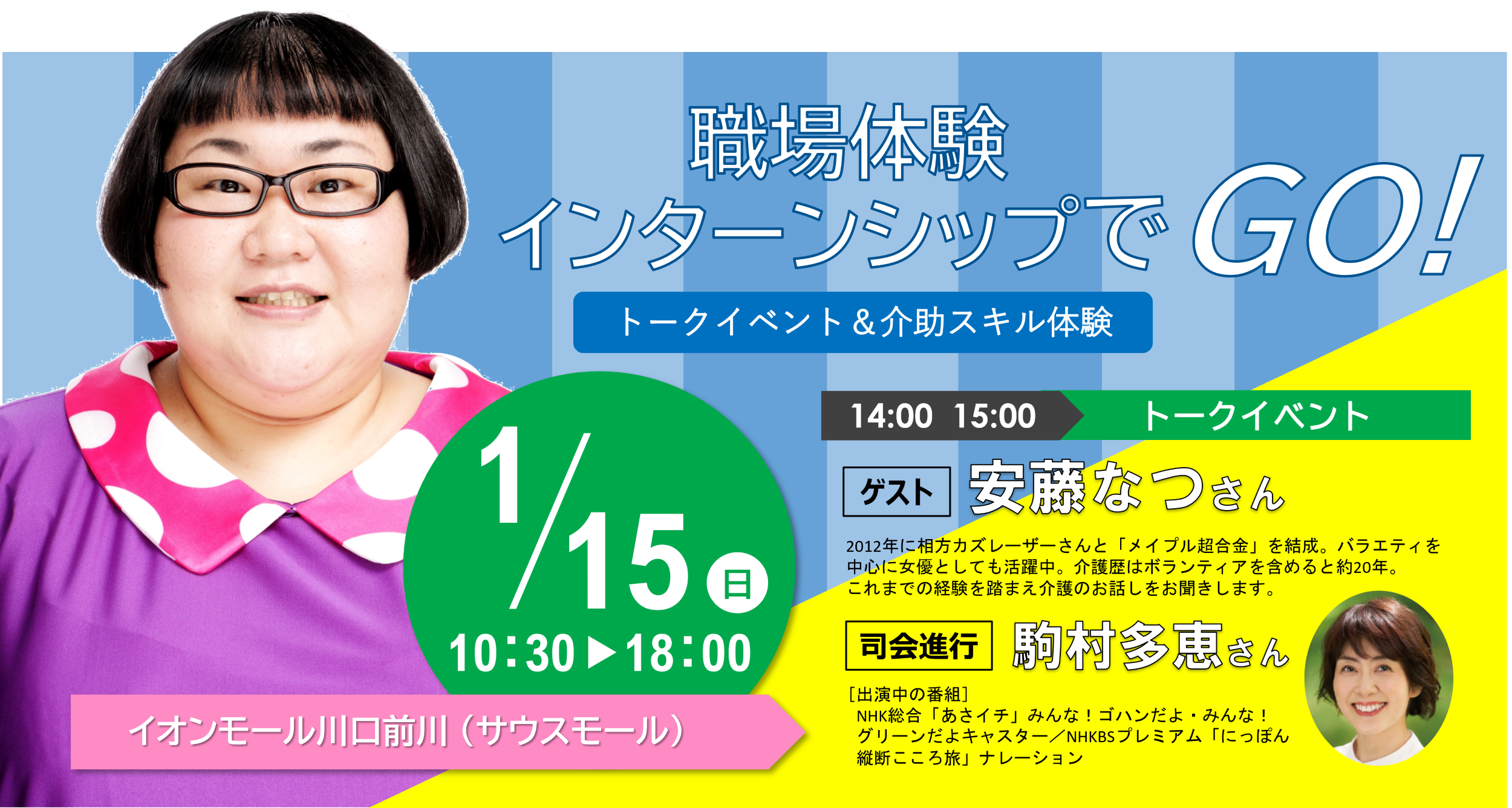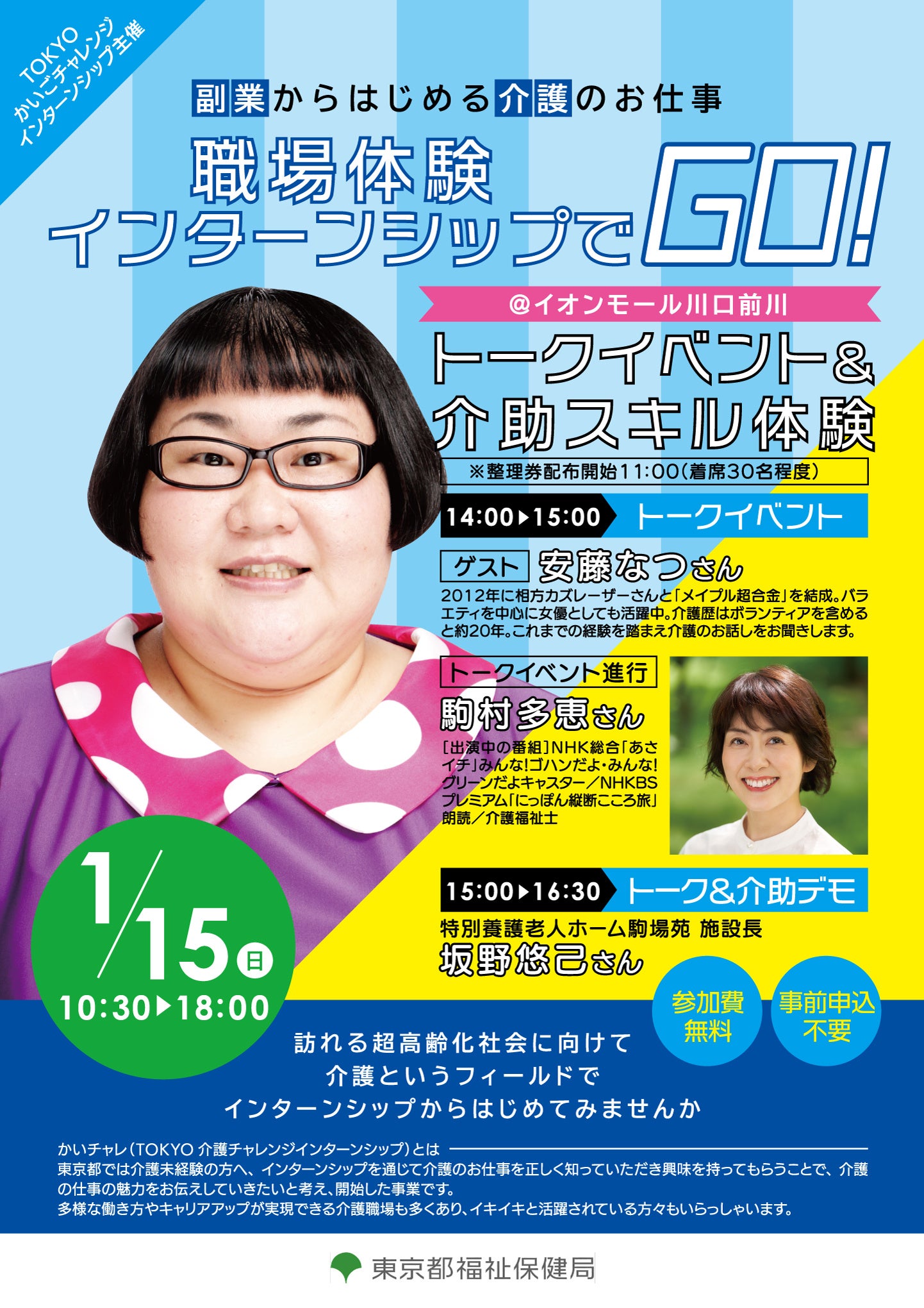 【TOKYOかいごチャレンジインターンシップ】1/15(日)イオンモール川口前川にてトークイベント&介護スキル体験を開催!安藤なつさんが来場