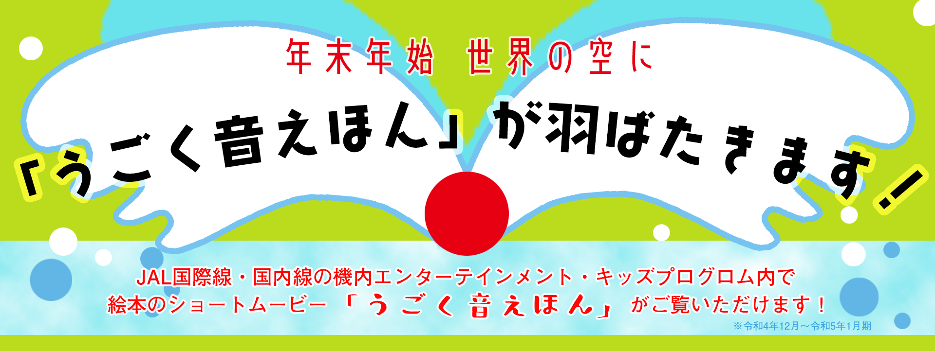 日本航空(JAL)の国内・国際線の機内エンターテインメントのキッズプログラムで『うごく音えほん』(神崎ゆう子プロデュース・株式会社YUKOGARDEN制作)が見られるようになりました!