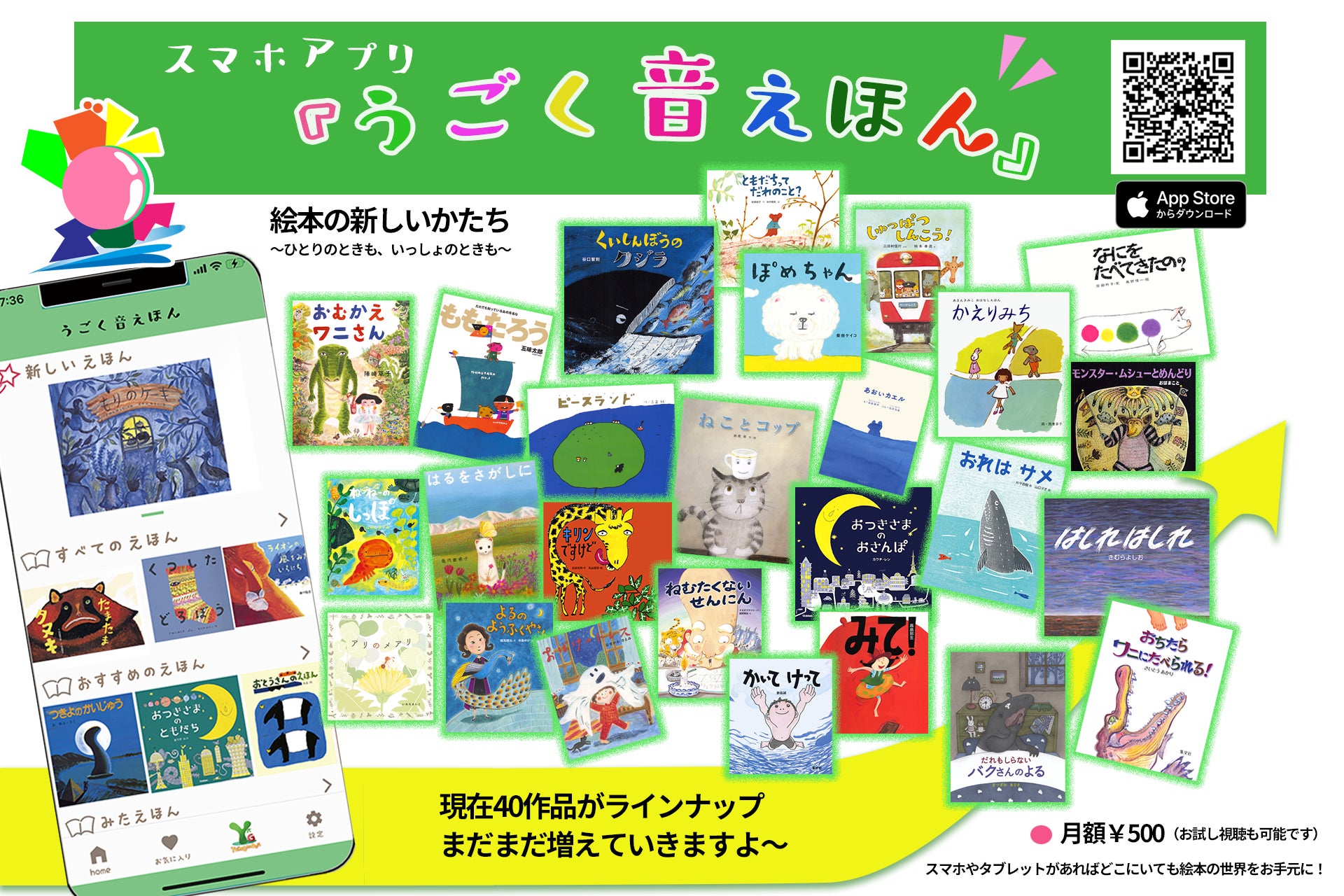 2022年の5月にスマートフォン・タブレット向けのアプリとして公開された『うごく音えほん』は「神崎ゆう子が考える新しい親子向けエンターテイメント映像のかたち」として毎月新作を追加しつつラインナップを増やしています。