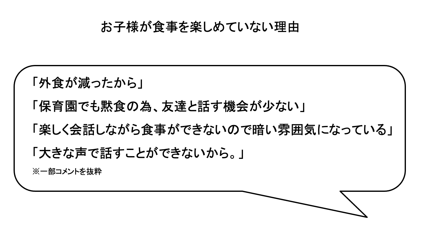 └楽しめていない理由に「外食が減ったから」「保育園でも黙食の為、友達と話す機会が少ない」