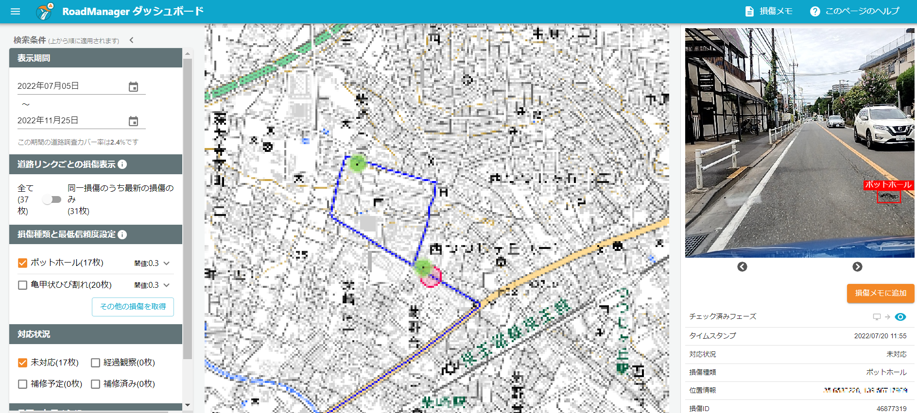 AIを用いた道路損傷検知サービス「RoadManager損傷検知」