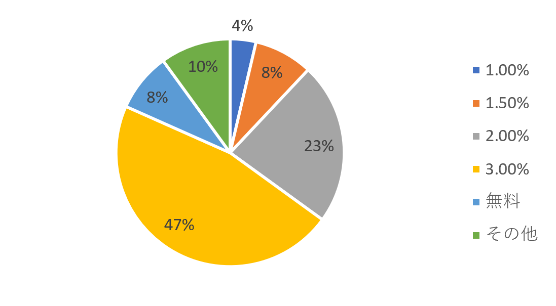 不動産売買時の仲介手数料に関しては、全体の47パーセントが宅地建物取引業法で定められた上限金額である「物件価格の3.00%」を支払っていることが明らかになりました(400万円を超える物件の場合の上限、消費税を除く)。