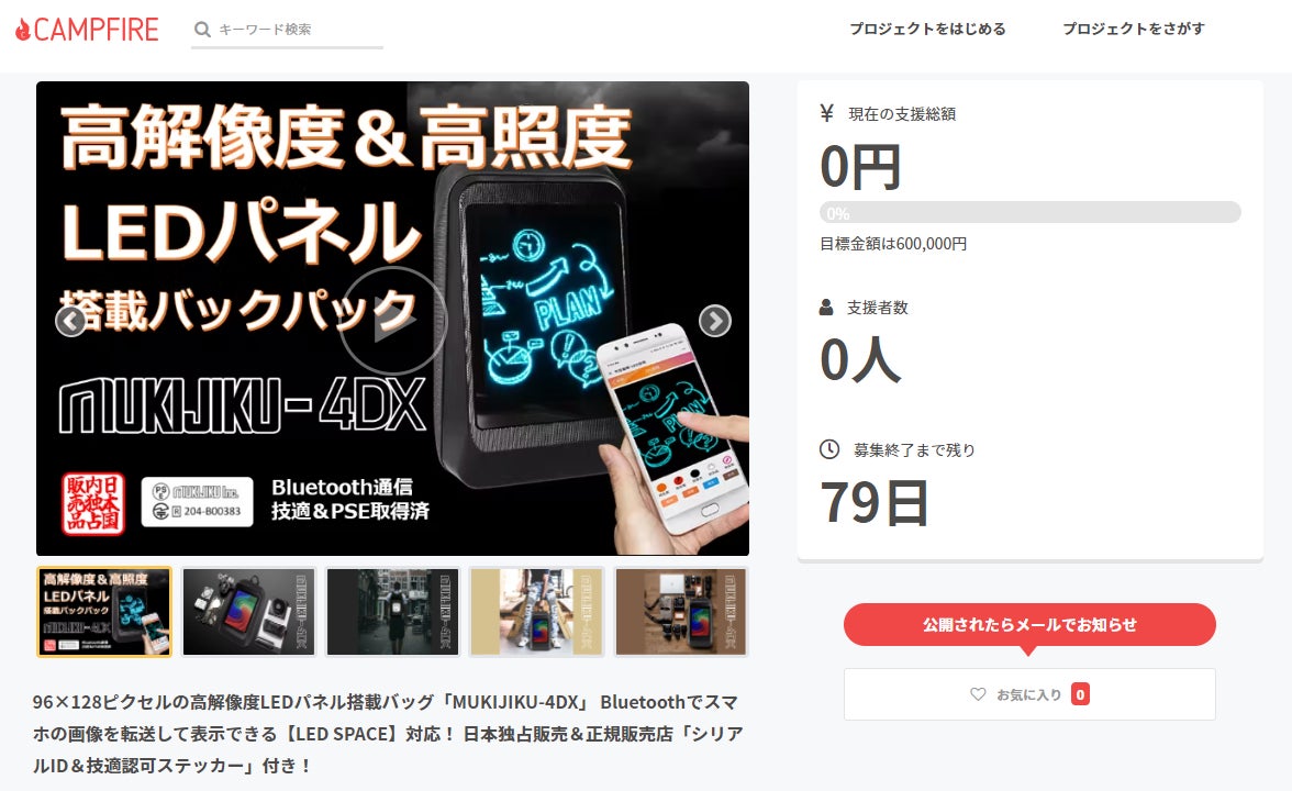 日本独占販売★高解像度&高照度LEDパネル搭載バックパック「MUKIJIKU-4DX」CAMPFIREにてクラウドファンディング開始