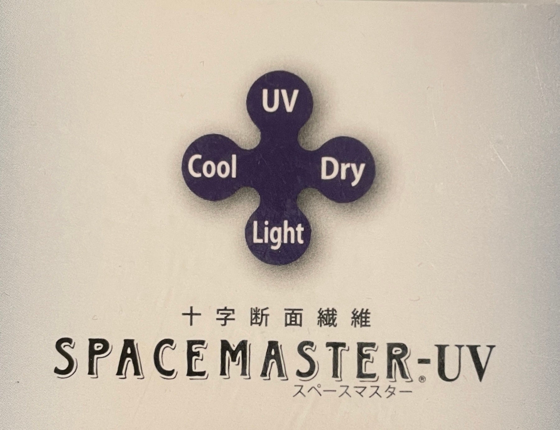 太陽の熱を遮蔽する”太陽熱遮蔽性”・十字断面の繊維により”軽量性”に優れているという機能性素材です。