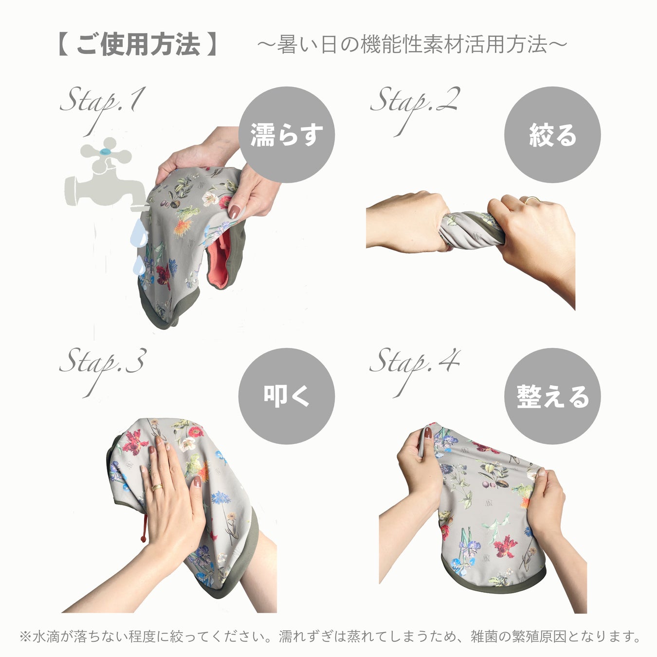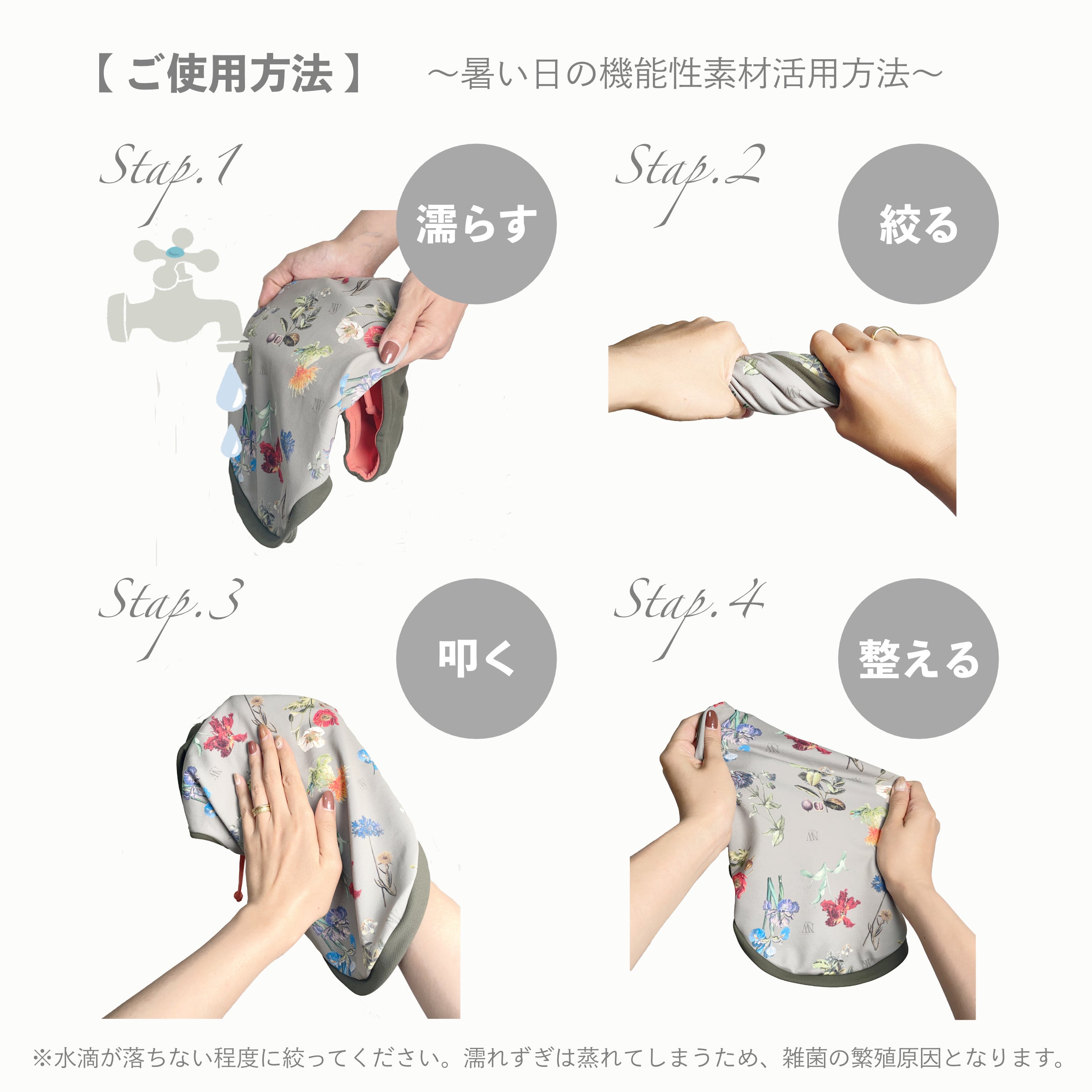 Numéro wang tokyoの『Antique flower hoodie』は、特殊繊維の吸汗性(吸水性)・速乾性のある機能素材で作られているので、水で濡らして絞り、着させるだけ。速乾素材が蒸れを防止し、水分を素早く蒸発させ気化熱でひんやりクールな着心地となり、大切なパートナーを厳しい暑さや熱中症の危険から守ってくれます。
