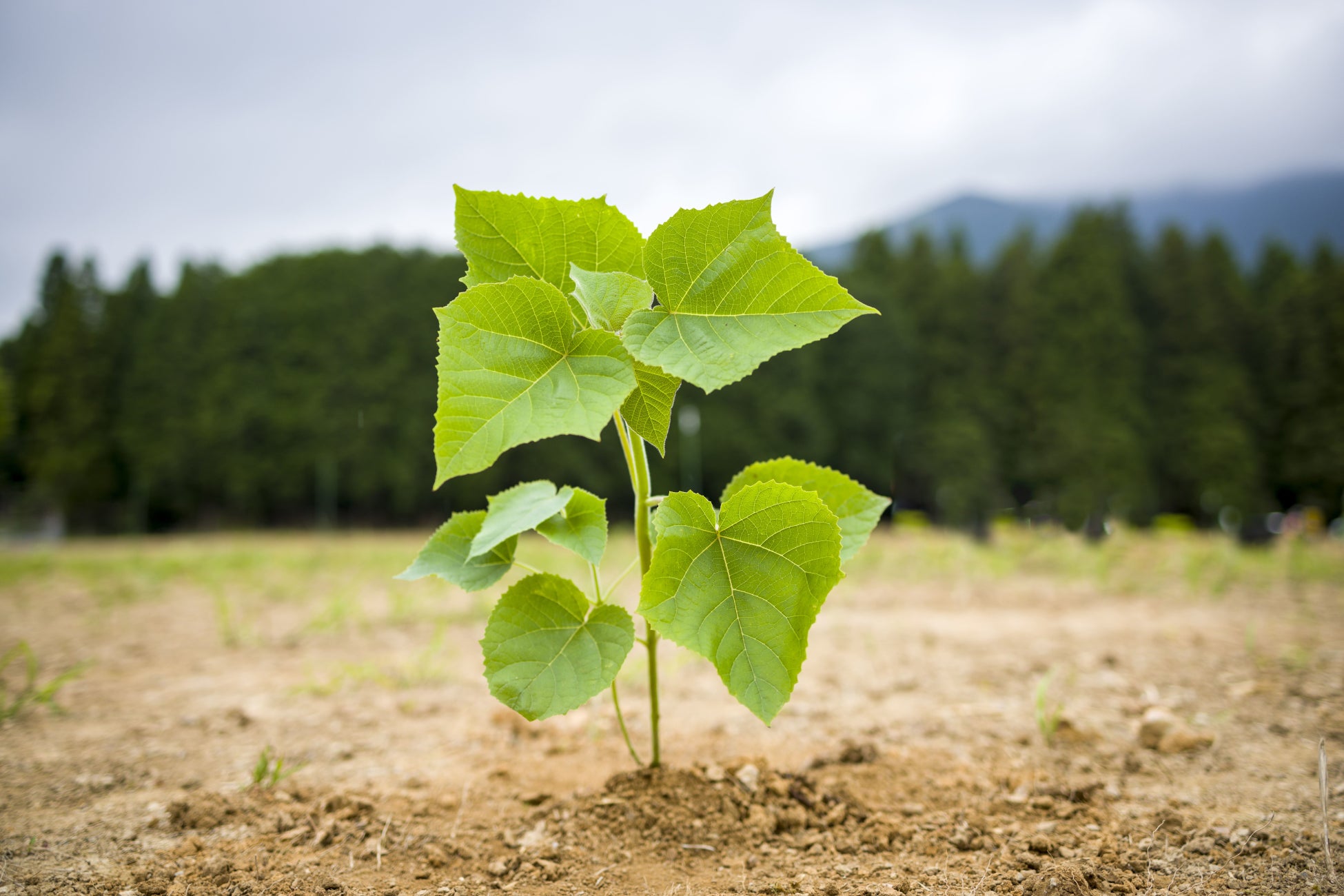 早生桐はCO2の吸収量が杉人工林の10倍もあり、また成長が早く約4~5年で成木し、さらに伐採後も再発芽するという成長期プロセスを4-6回程度繰り返すのが大きな特徴であります。
