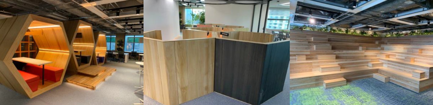 当社が考案する最適なオフィス環境を提案から施工までをワンストップで対応するプロジェクト。再生紙と木材のみを使用した家具「furniTure」で構成し、家具軽量化による簡単な移動を可能にすることで、より自由な空間作りを実現し、オープンでリラックスできる空間づくりを目指します。今後は、家具の木材に早生桐を活用し、さらなる事業展開を進めてまいります。