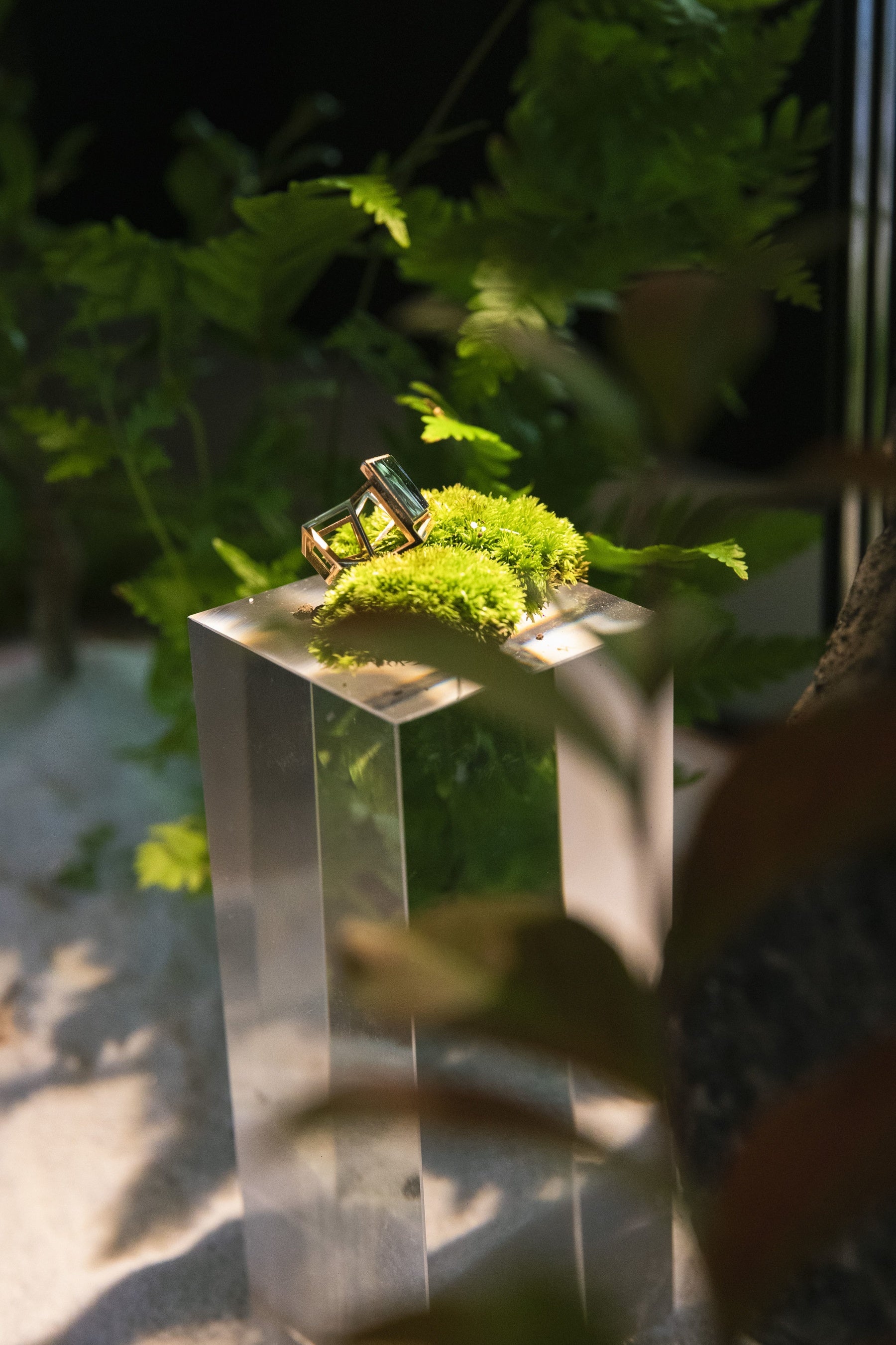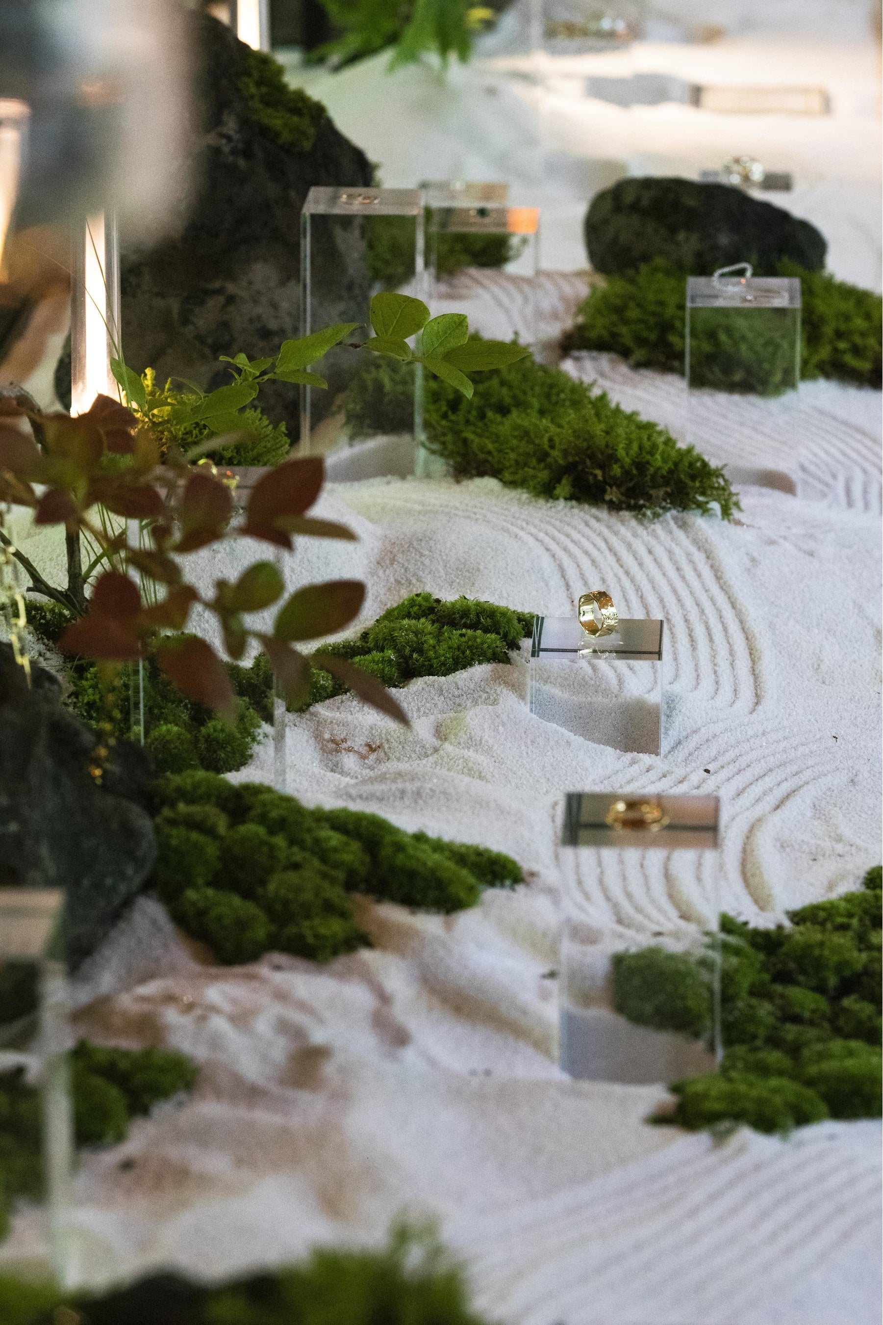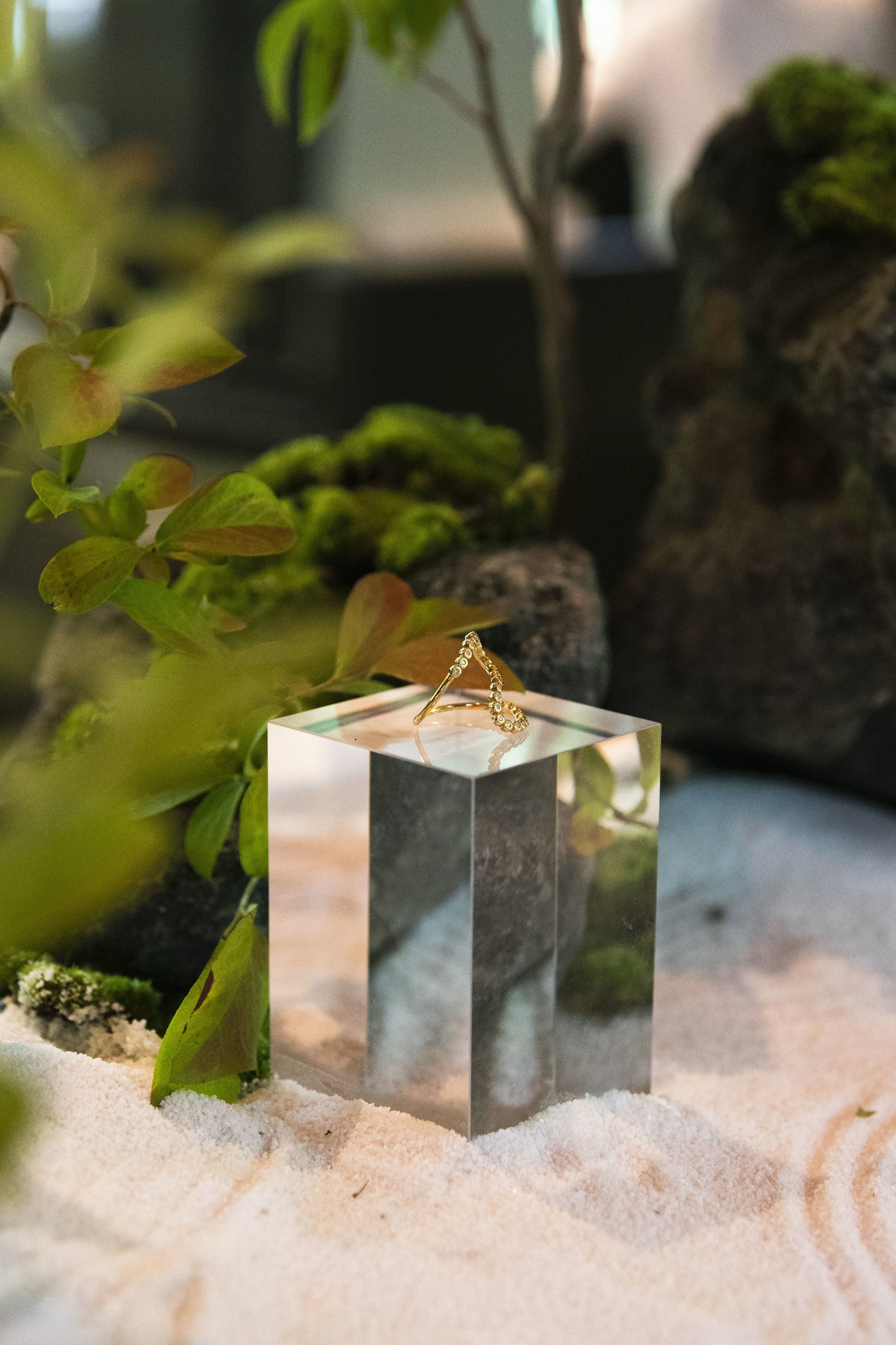 同社が運営するサイトで取り扱う商品群は、盆栽と一緒に展示され、その世界観の広がりを演出。メディア関係者やモデル、インフルエンサー、ジュエリー業界の方々が来場し、ザ・フューチャー・ロックスの革命的なビジネスモデルと、その優れたクリエイティビティを堪能しました。