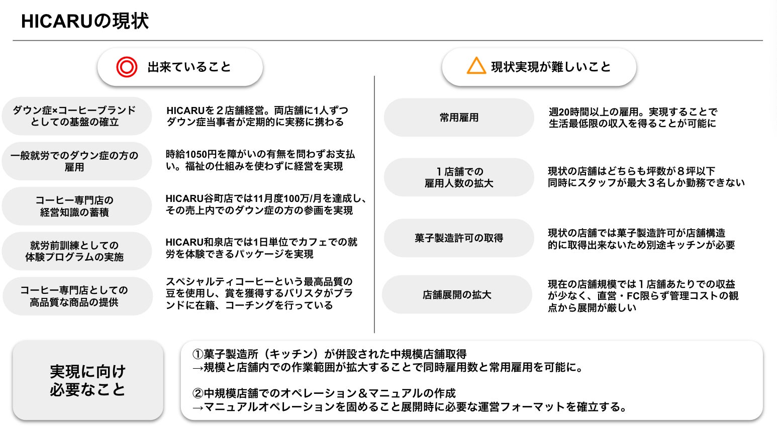 ダウン症の方々が一般就労として参画するカフェ「HICARU COFFEE ROASTER Original」実店舗全国展開プロジェクト始動!