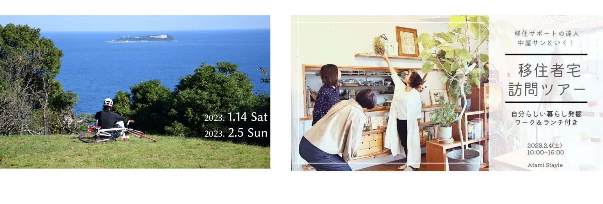 『自然』を日々の暮らしに取り入れられる場所が、中心部から少し離れた場所にはあります。自然の力を体感し、自分の生活の一部に取り入れるきっかけとなるような体験プログラムです。ロードバイクやロゲイニング※など、雄大な自然を感じられるプログラムから、伊豆多賀への移住された方のお宅訪問ツアーなど、リアルな生活に触れることができる内容になっています。