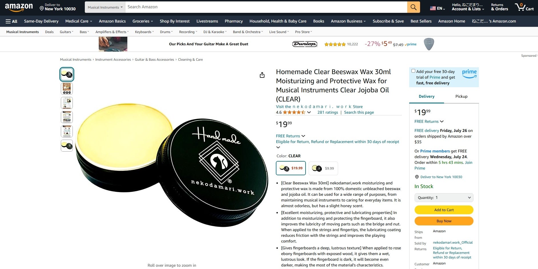 4万5,000個売れた楽器用ワックスにハーフサイズ登場!『クリア蜜蝋ワックスMINI』を日米同時発売