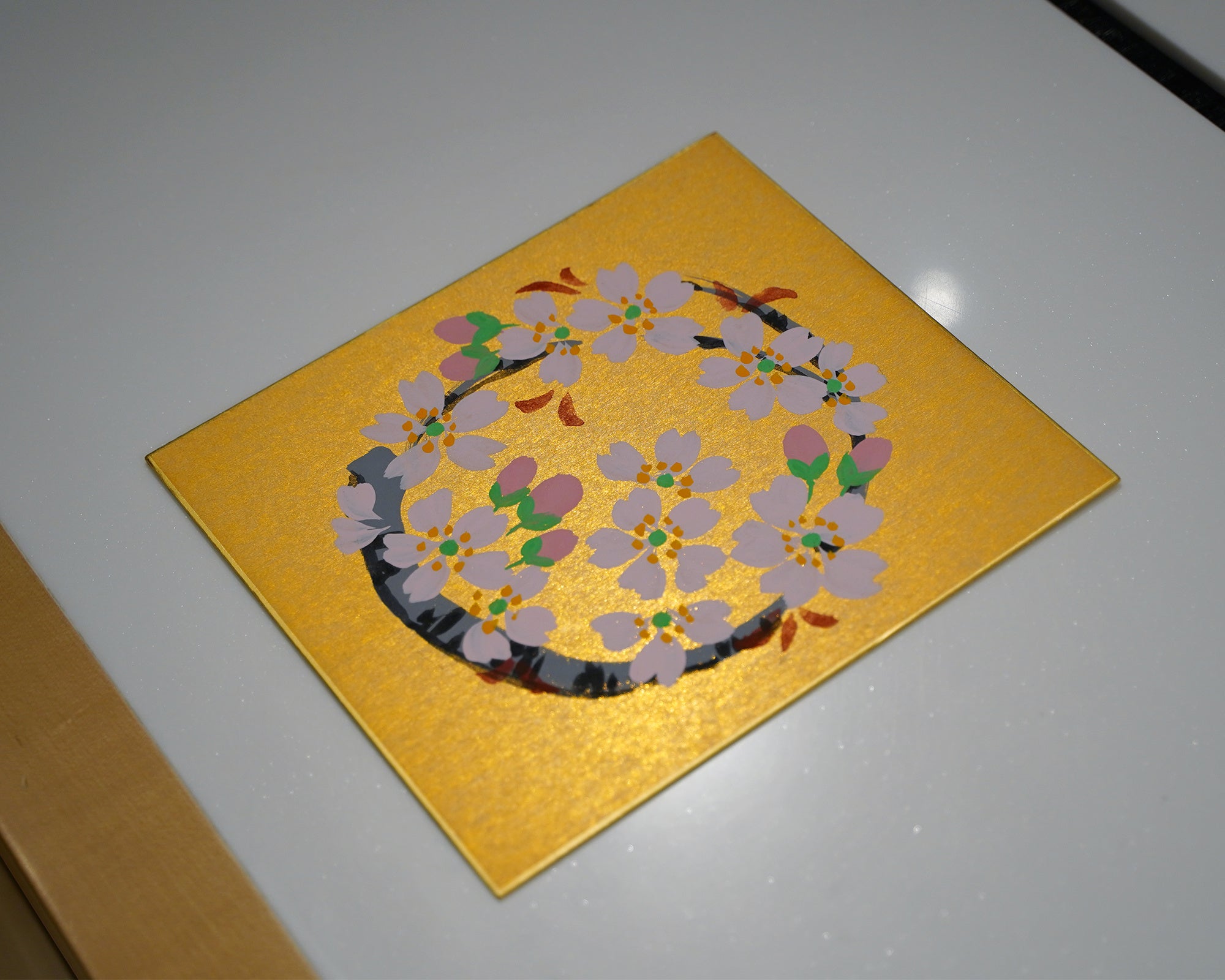 金色紙に花丸を描くワークショップ