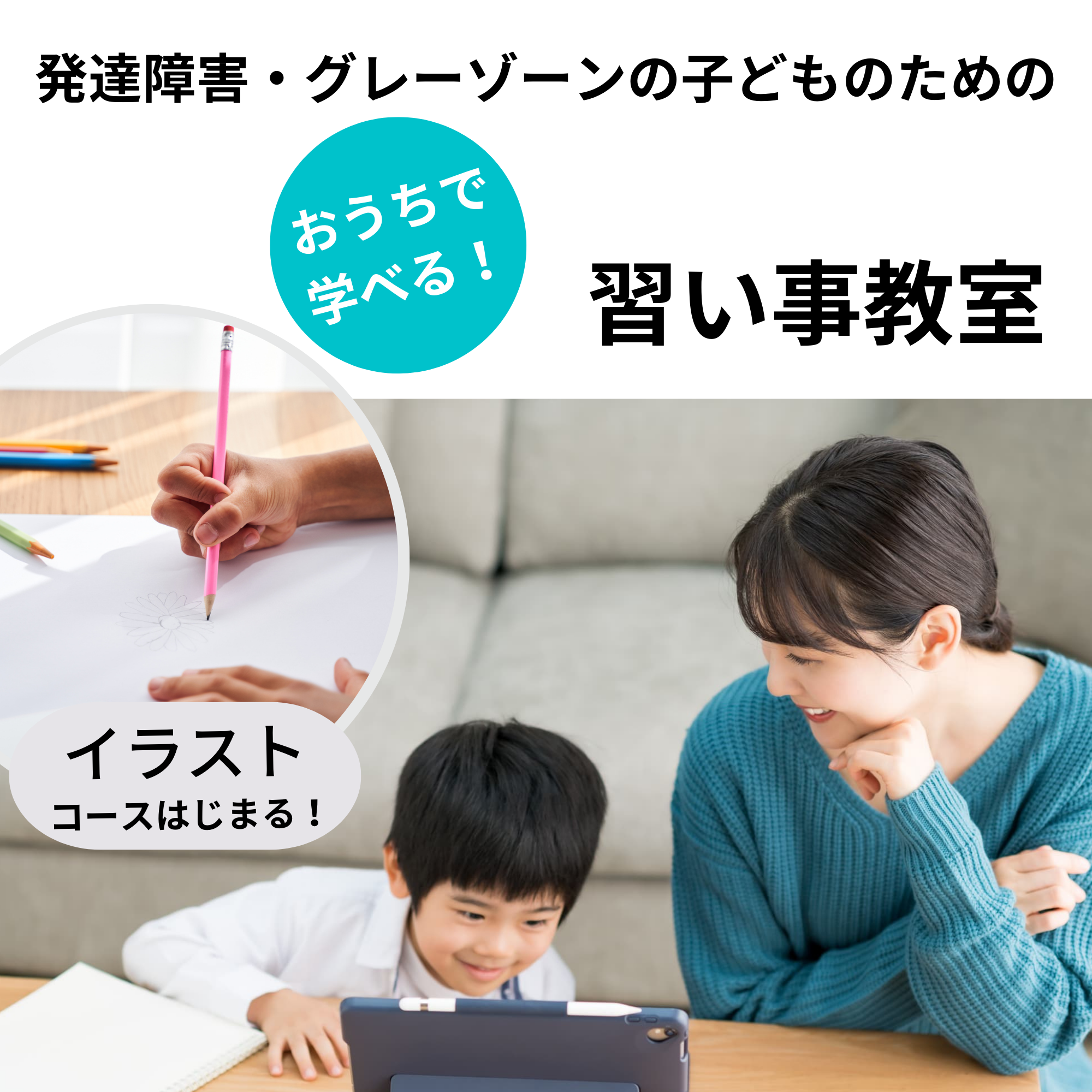 イラスト、デザイン、小説、動画・アニメ制作・・・など子どもが夢中な事をプロの先生たちから教わる事ができるオンラインの習い事教室。発達障害・グレーゾーンのお子様専用の教室のため、他の親子や先生に気兼ねせず受講できます。