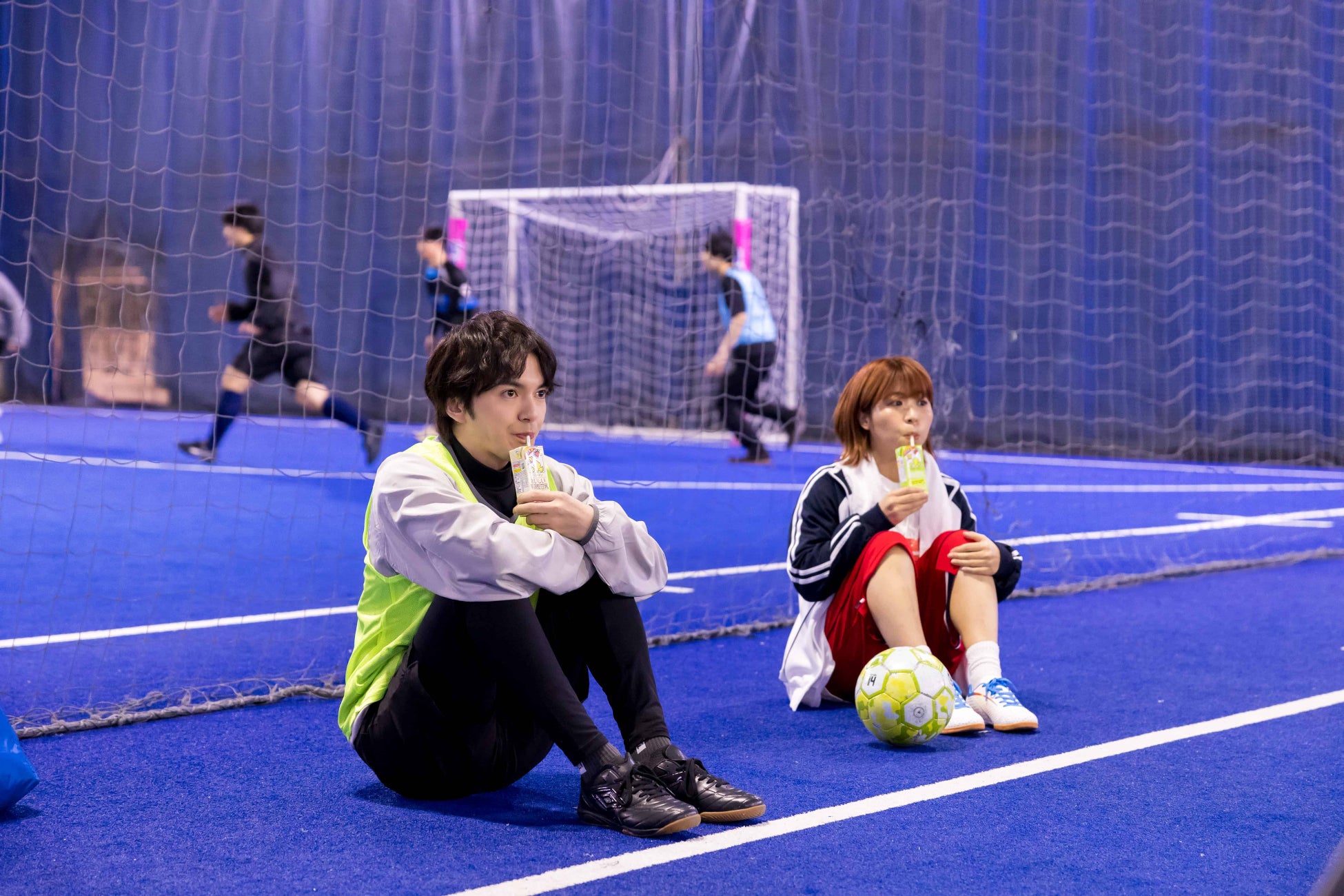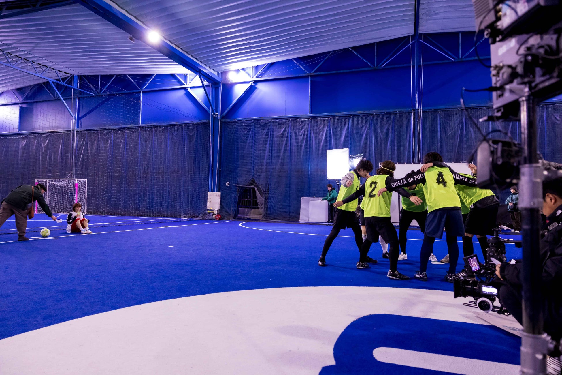 「飲む理由があるカラダの健康≪円陣≫」篇では、フットサルの社会⼈チームに所属するメンバー演じる林さんが、チームメンバーと円陣を組み、試合前の掛け声を⾏うシーンからスタート。会場⼊りしてすぐは、フットサル場の雰囲気を楽しんでいた林さんですが、監督