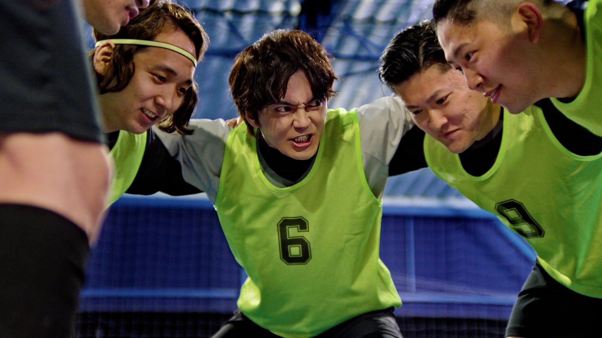 フットサルチームで熱い円陣だけ参加して応援(ベンチ)に回るシュールな役を演じきる林さん
