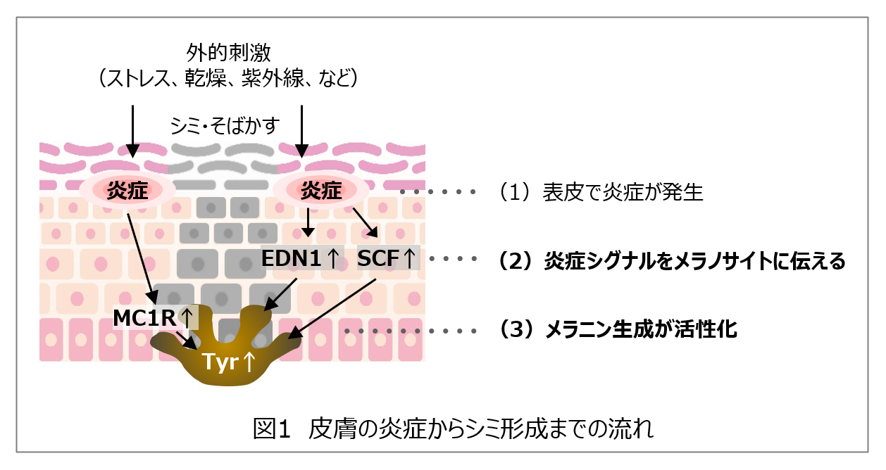 - シミの一因「皮膚の炎症」を起きにくくする成分を開発