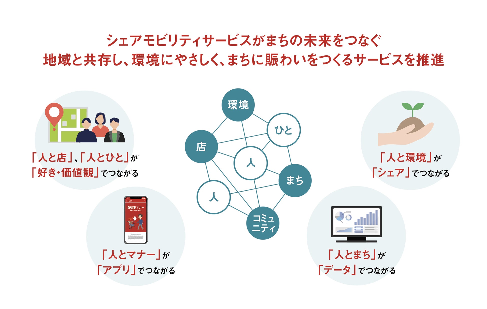シェアモビリティをタッチポイントにまちの未来をつなぐ、地域と共存し環境に優しくまちに賑わいをつくるサービスを推進