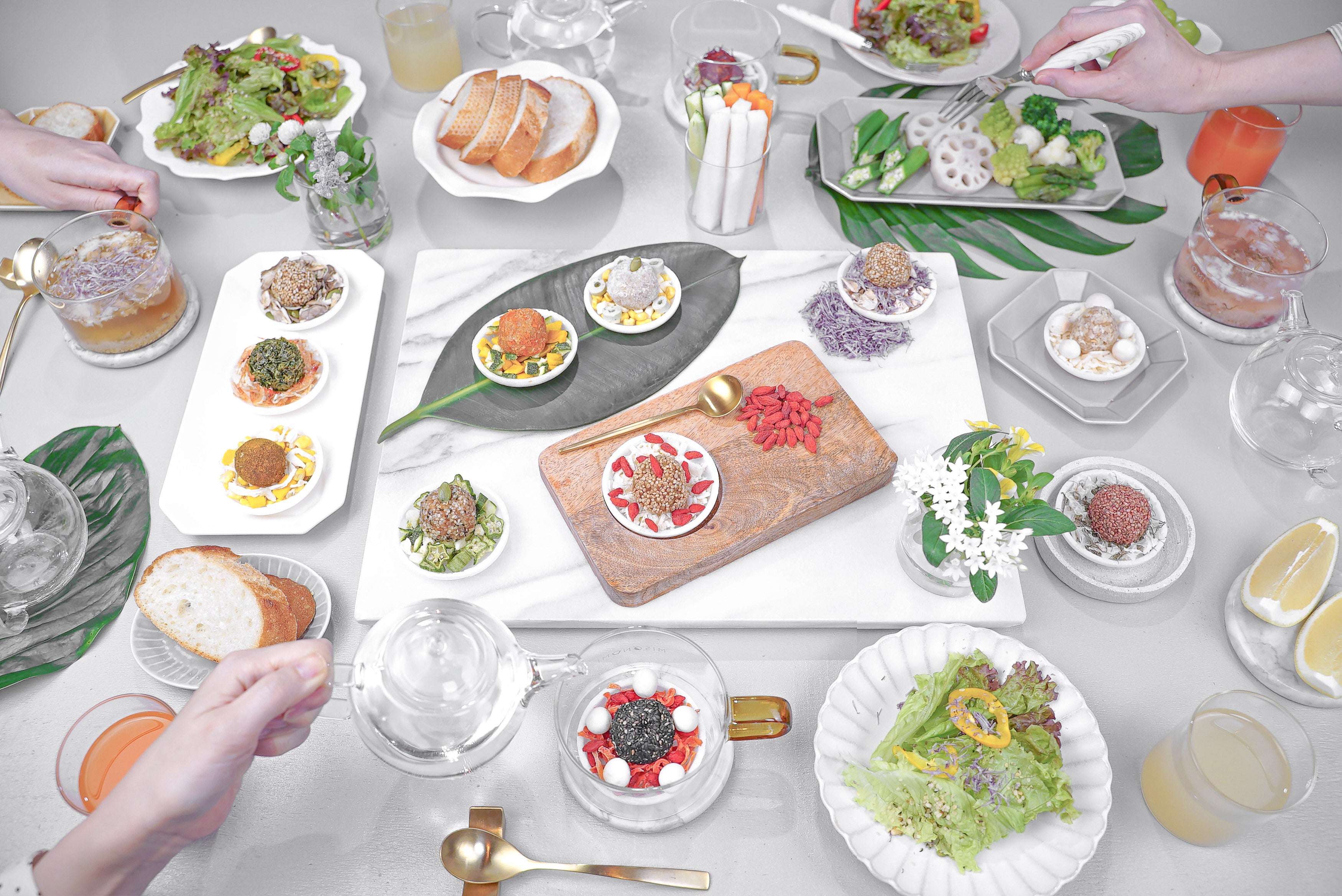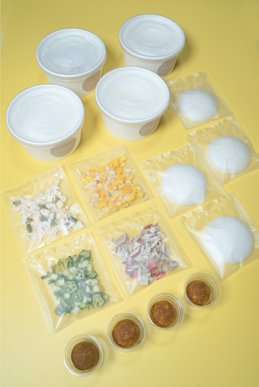 玄米みそにカレーパウダー、豆乳を混ぜ込み、さらにカレーパウダーでくるんだパンチのあるMISONOMI。色彩鮮やかで食欲をそそる4種の具材と組み合わせました。