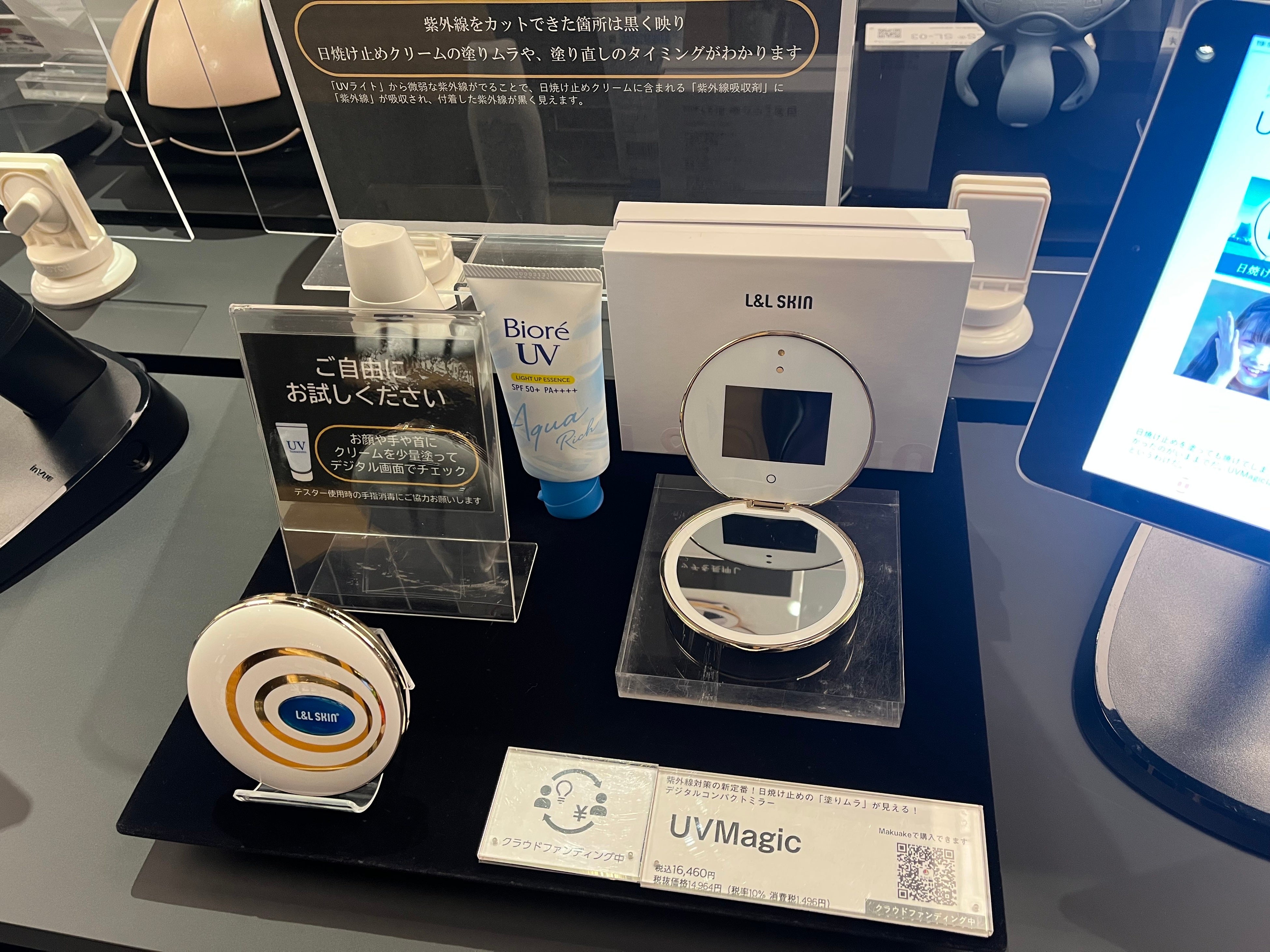 UVMagicは、日焼け止めの「塗りムラ」が確認できるコンパクトミラーです。Makuakeで「応援購入」できるのも残り2週間。新機能を試せる展示を都内で開始し、試した方の驚きの声が続々と届いています。