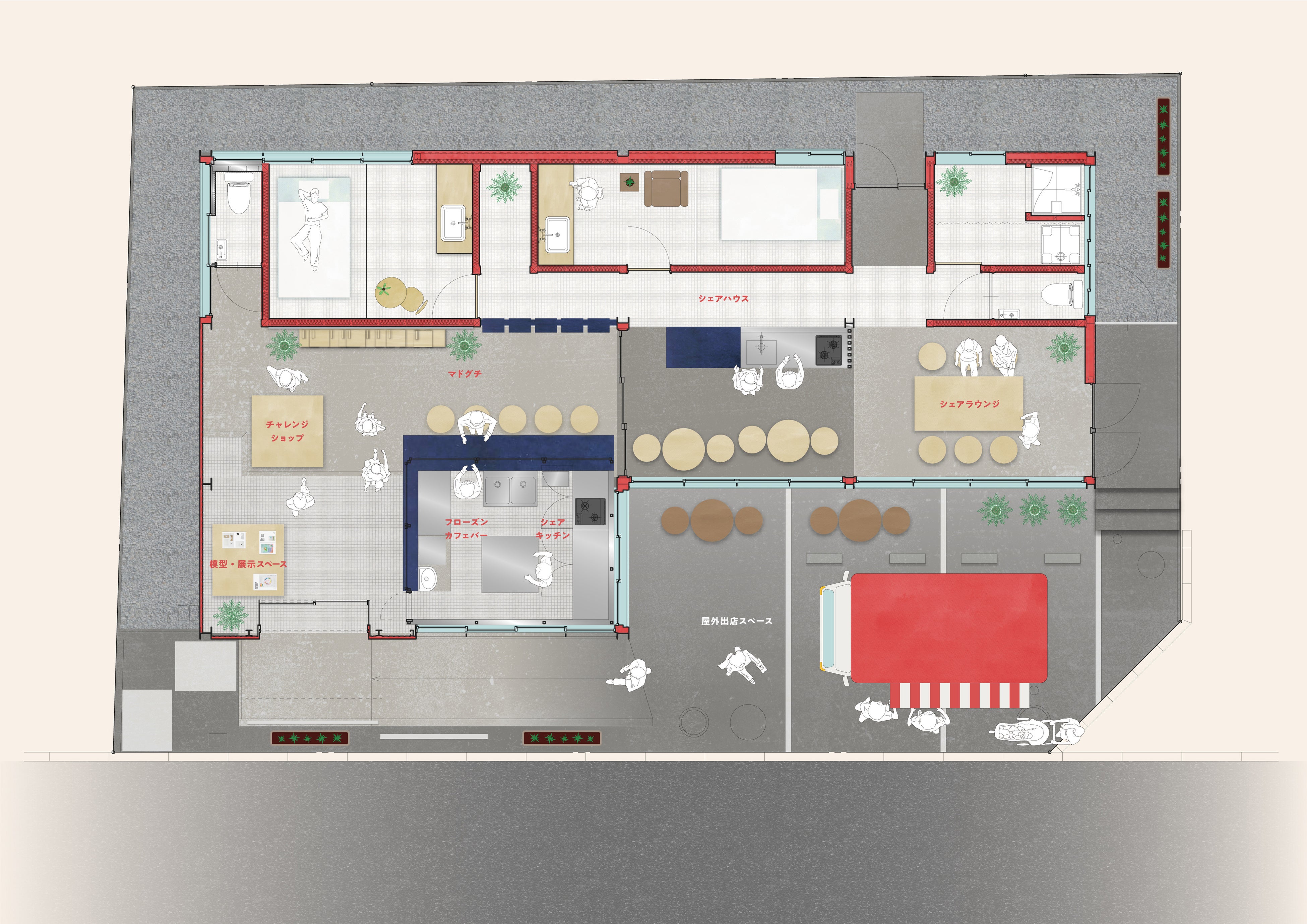 ※「フローズンカフェバー」では「シェアキッチン」や屋外出店スペースの「キッチンカー」利用者の余った商品を外注で冷凍加工してもらうこともできます。その商品は「フローズンカフェバー」および屋外の冷凍自販機での販売が可能です。詳しくは「フローズンカフェバー」店頭にてお問い合わせください。
