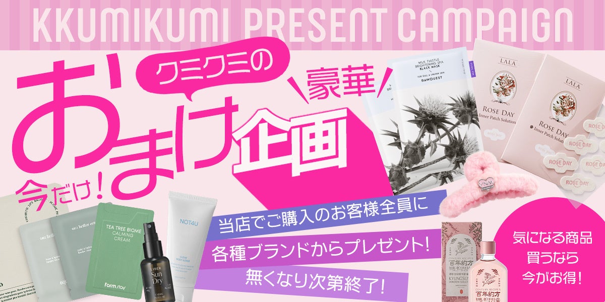 韓国のトレンドコスメを集めた【クミクミ(꾸미꾸미)】にて、Qoo10メガ割・楽天市場スーパーSALE期間中、最大50%OFFのセール&豪華おまけイベントを実施いたします。