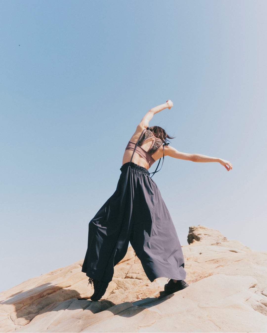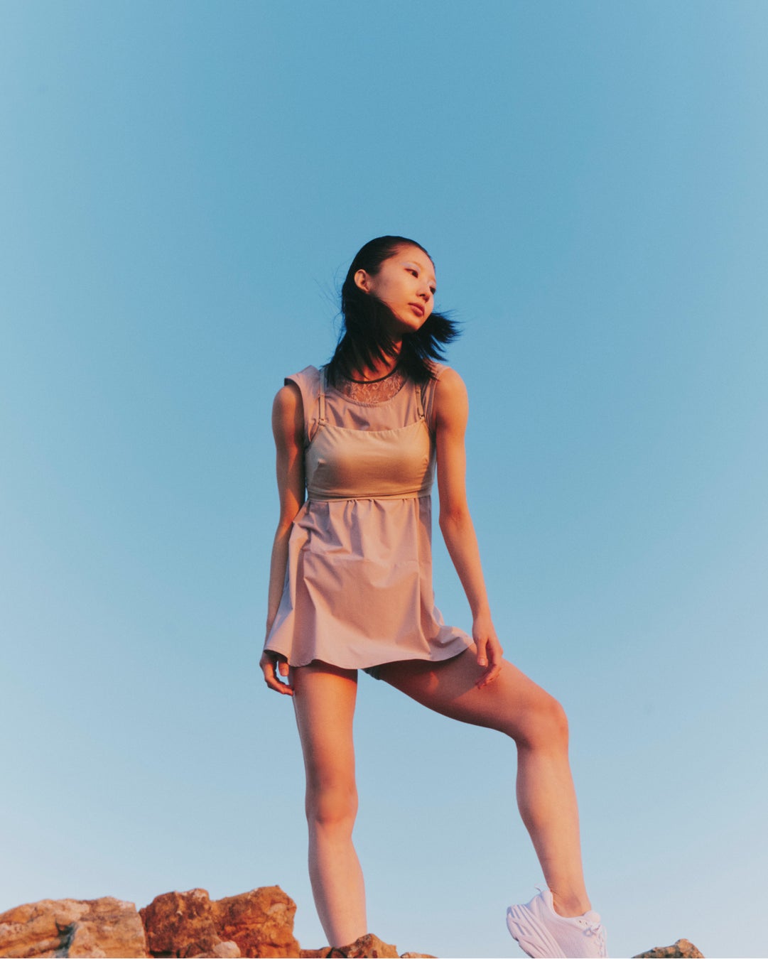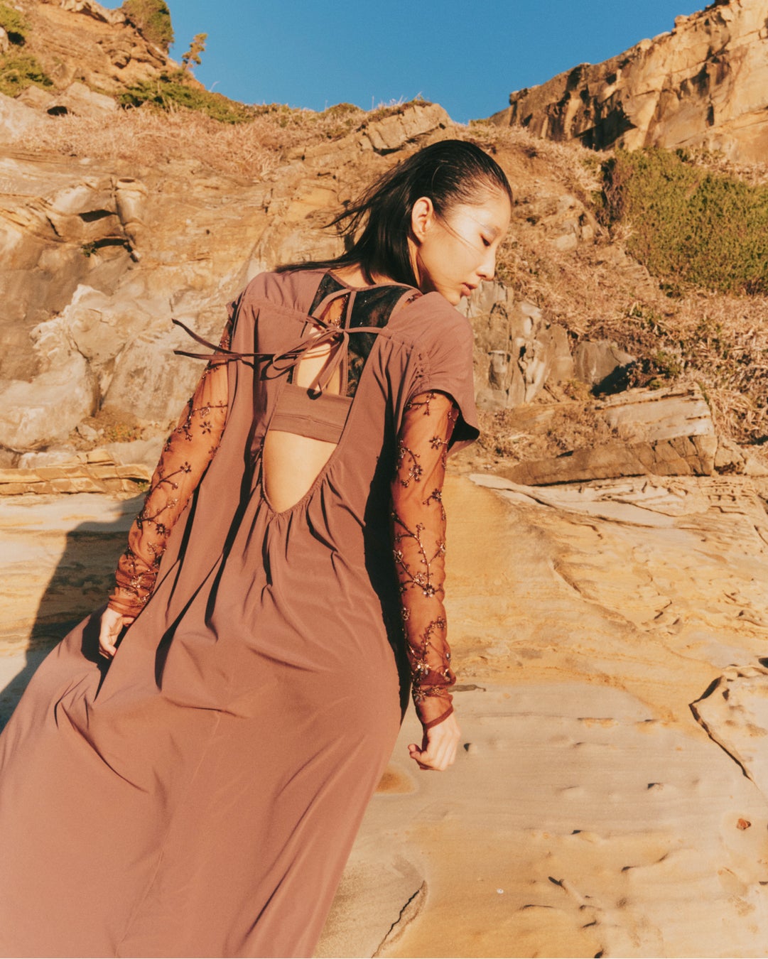 “Drape(ドレープ)・Airy(エアリー)”をキーワードに、自然体で優美、ポジティブな女性像を今までにない新しいものを取り込む動の感性(アクティブウエア)と、内なる自分と向き合う静の感性(インナーウェア)のコラボレーションで表現しています。インナー×アクティブウエアのコーディネートも楽しめます。