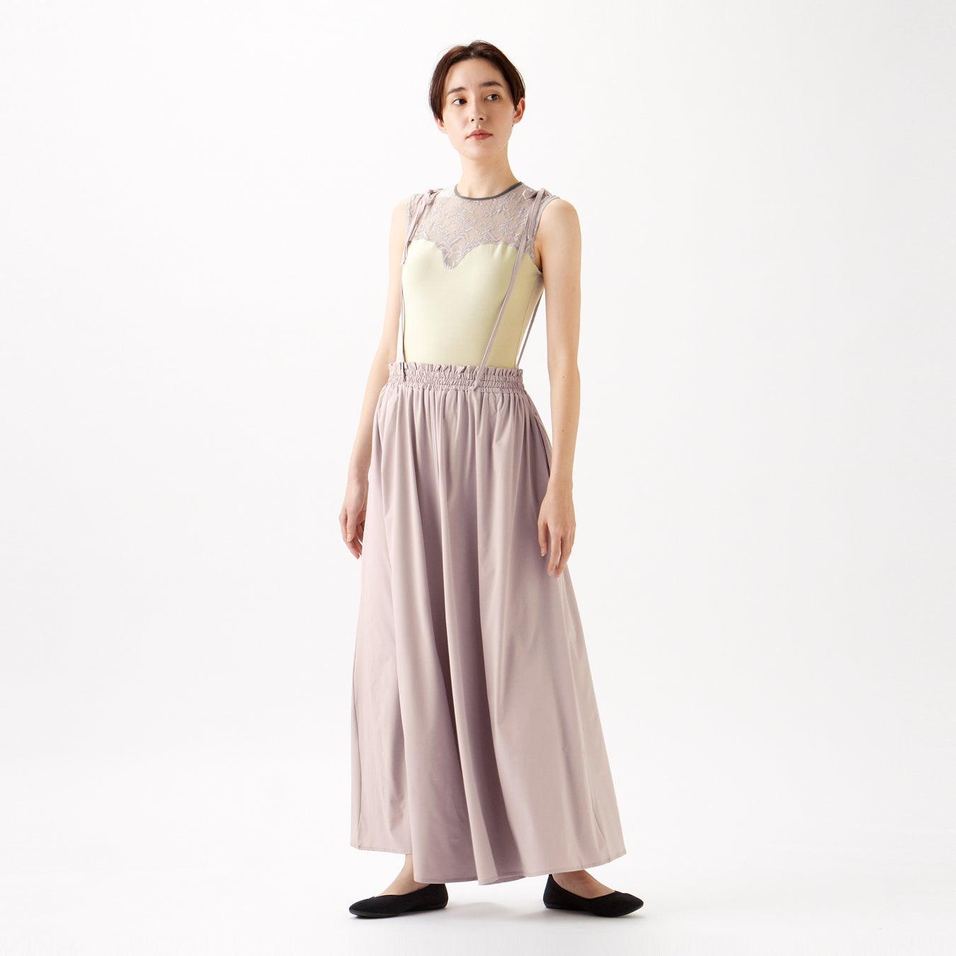 薄くソフトな風合いの布帛素材を使用したワイドパンツ。ワイドパンツ、サロペット、サスペンダーパンツ風など、3wayで着まわすことが出来るアイテムです。