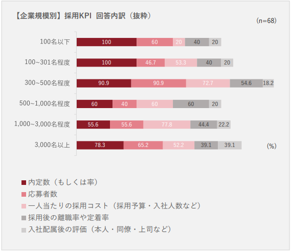 ■企業規模別にみる採用活動KPIは、企業規模を問わず「内定数」が1位