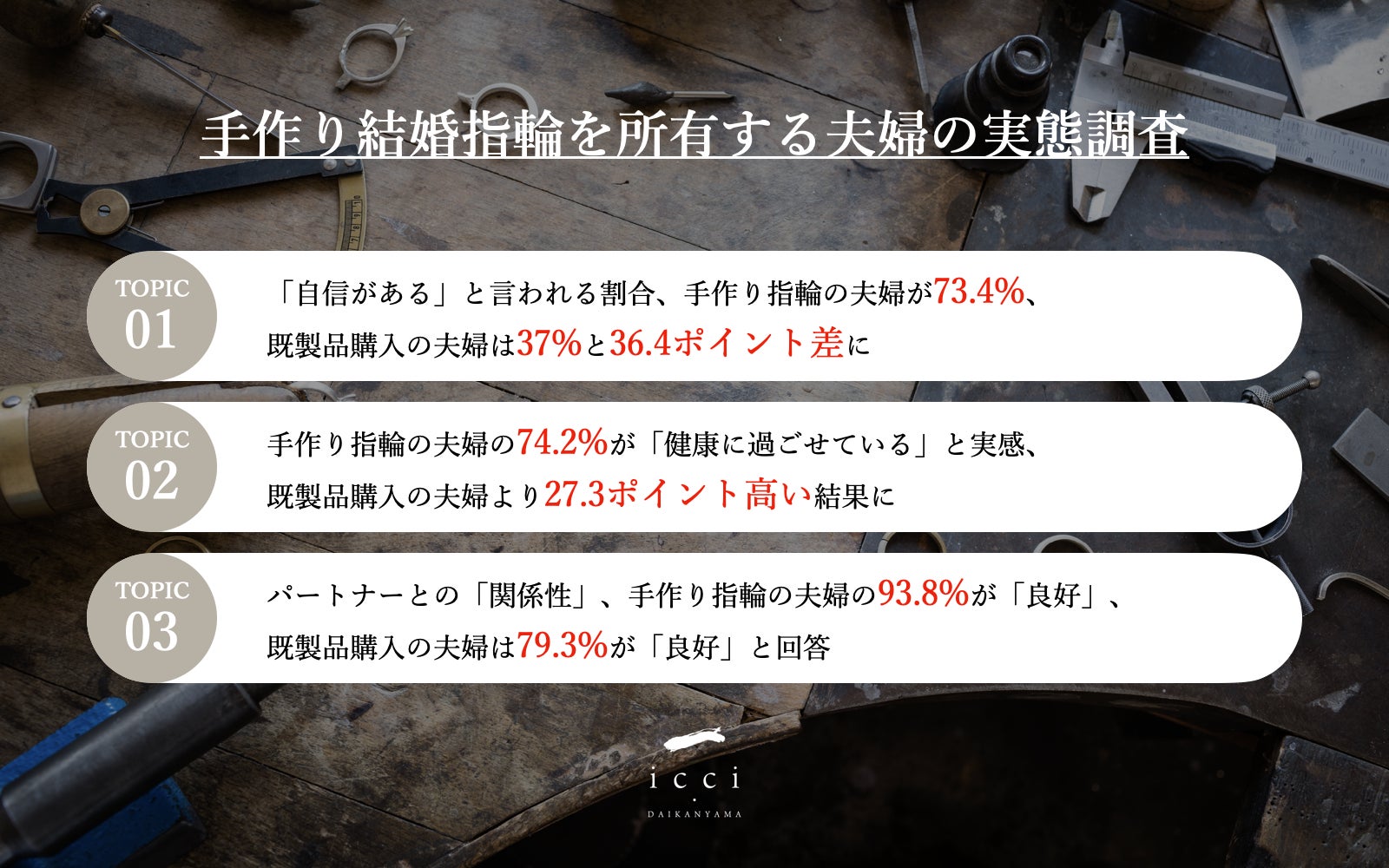 〜東京/代官山の手作り結婚指輪・婚約指輪・ペアリングの「icci 代官山」、手作り結婚指輪を所有する夫婦の実態調査〜