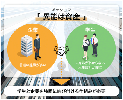 自分の強みや才能に気づかないまま社会に出て、自分の思い描いていた生き方とのギャップに息苦しさを感じる若者は少なくありません。結果として、企業は若者の離職率の上昇に悩まされ、せっかく採用しても社員が定着しないという大きな課題に直面していると考えています。