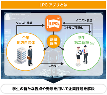 弊社は、学生や第二新卒、さらには高校生、アスリートや障害を持つ人など就職活動中のあらゆる人々と、企業課題や社会課題を結びつけ、若い視点と新たな発想を活かして共に解決していく課題解決型プラットフォーム『LPG(Life Playing Game)』を開発しました。