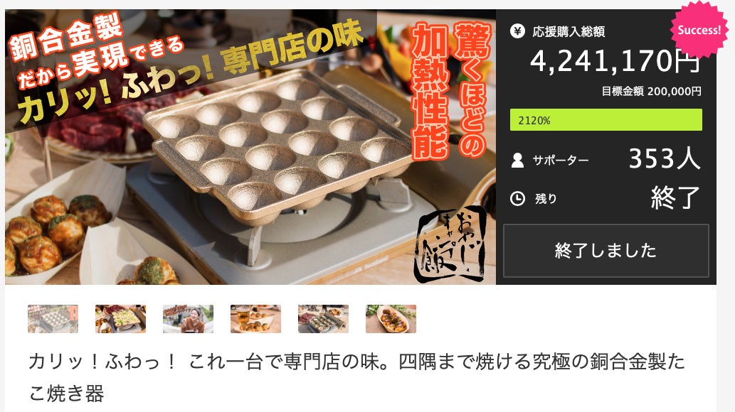 先行販売を行った、クラウドファンディング2ヶ月で353人、400万円を超えるご支援をいただいた大人気の商品、銅合金鋳物製たこ焼き器takottoが遂に発売されます。