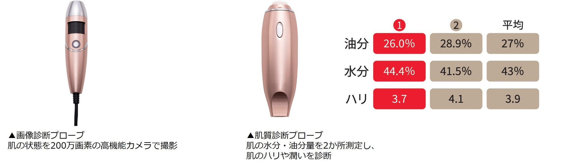 ※1:2022年6月17日現在、当社調べ(美容経済新聞【美容健康業界をけん引する成長企業アワード】にて調査を実施、次世代のリーダー企業20社において、2種の肌診断と5種のフェイシャル機能を備え、管理機能も搭載したサブスクモデルのサービスを実施している企業)