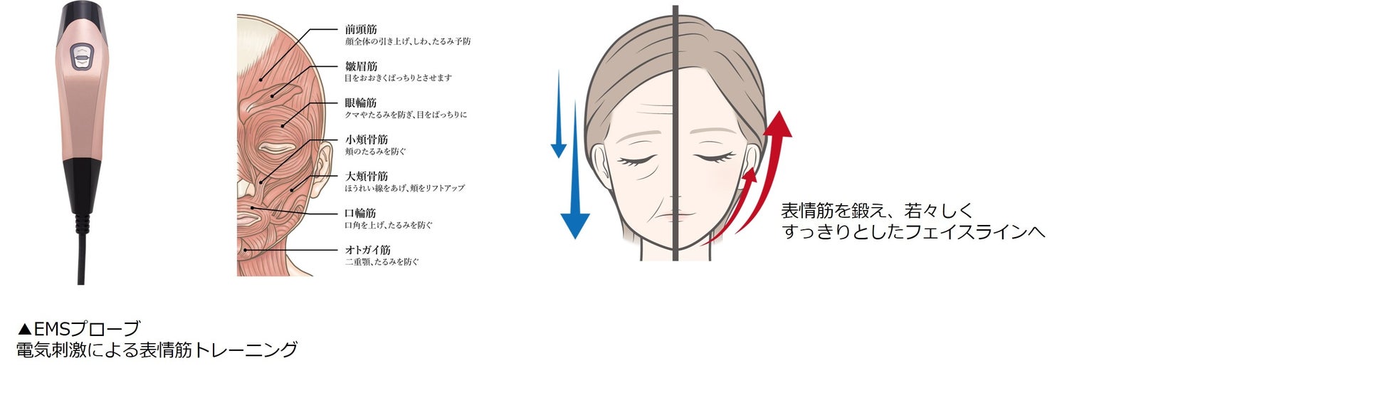 普段使わない筋肉や衰えてしまった筋肉へ働きかけ、筋肉運動を行うことで、お顔のたるみをすっきりと引き締めます。