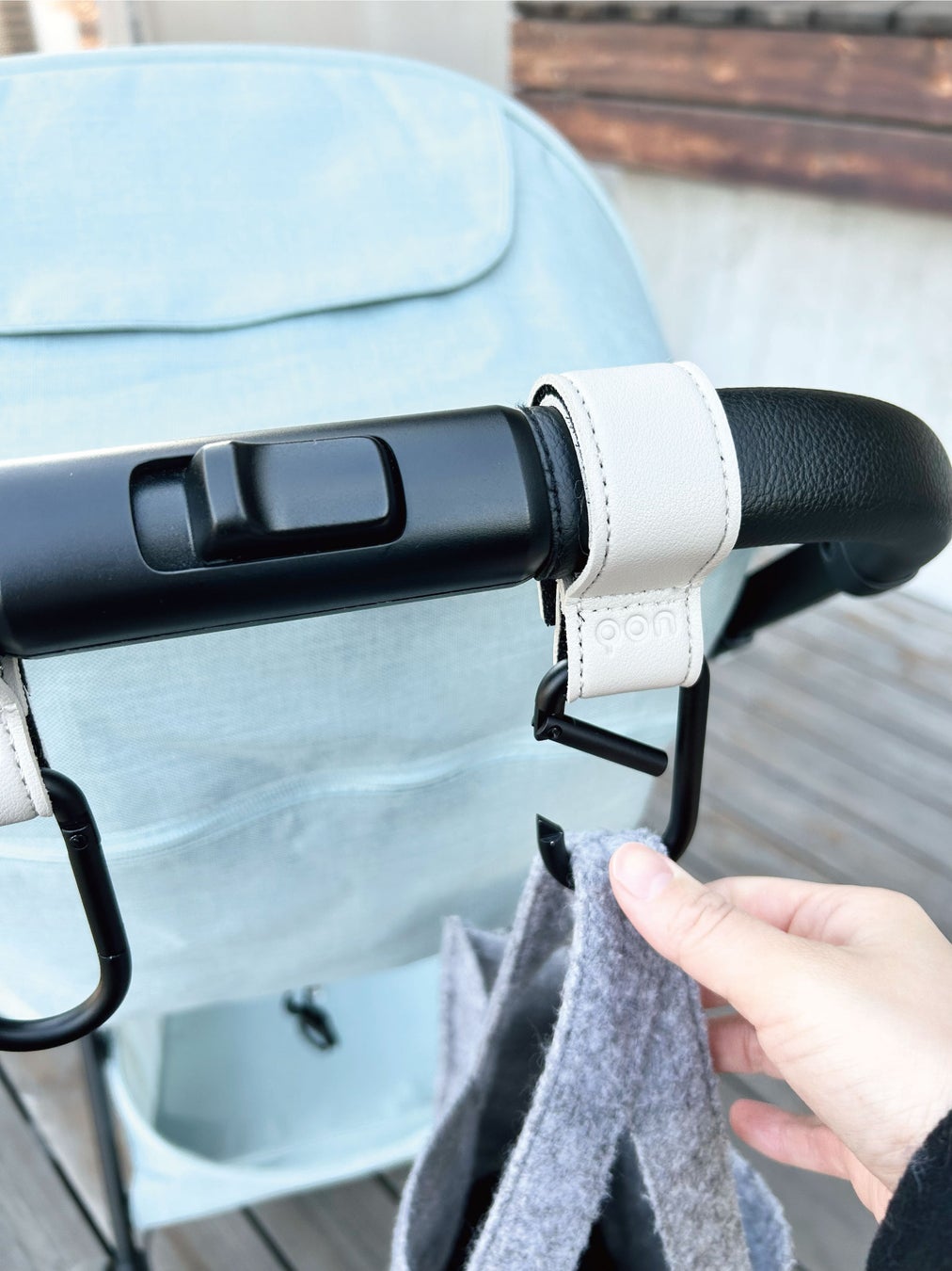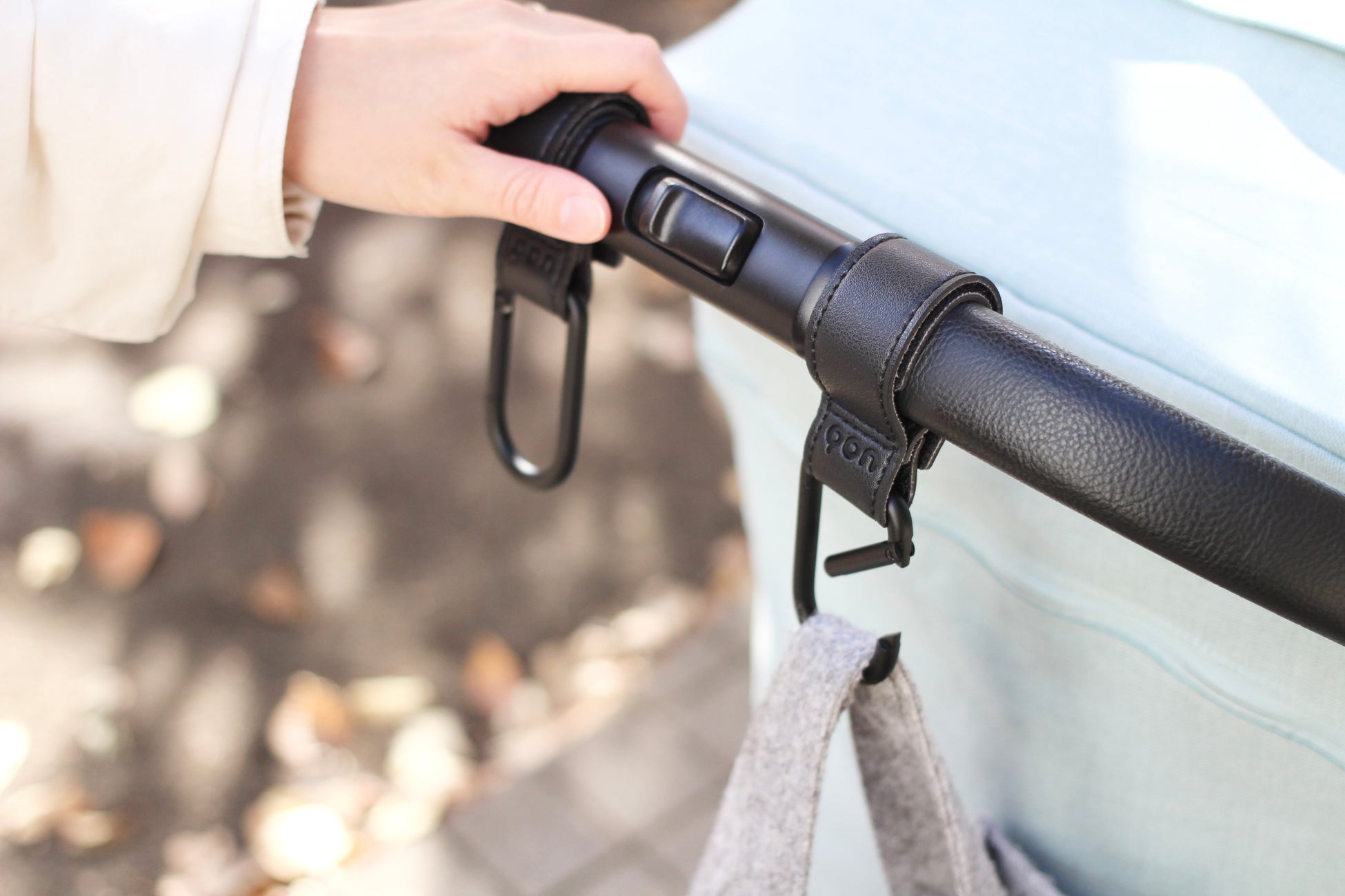 ベビーカーでお出かけをする子育て夫婦のために、赤ちゃんを抱っこしたまま、片手で荷物を着脱できる今までにないアイテムです。「デザイン性」と「実用性」を実現し、ママやパパの300件を超える【クチコミ】を形にしたベビーカーフックです。