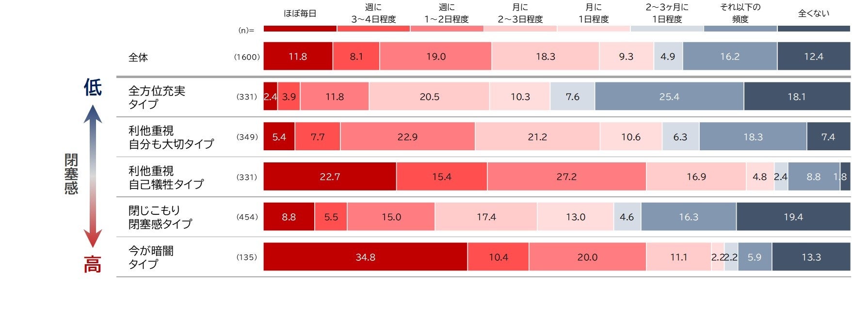 「全方位充実」、「利他重視・自分も大切」、「利他重視・自己犠牲」「閉じこもり閉塞感」、