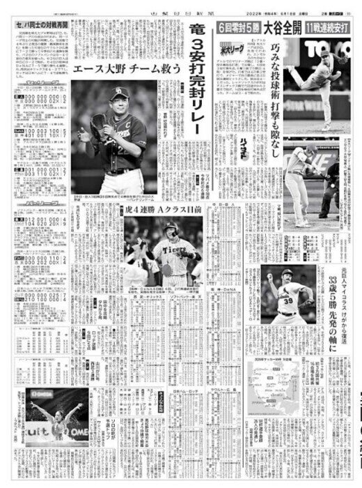 文字は縦を6.4%、横を13.3%それぞれ大きくし、字の領域を2割広げて見やすくします。スポーツ面で重要な要素となるスコアなど記録の文字も大きさを工夫して見やすくします。