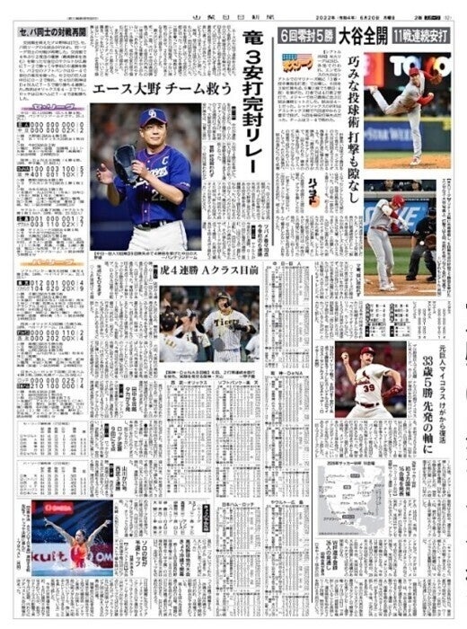 山梨日日新聞は7月1日からスポーツ面の文字サイズを大きくし、より読みやすくします。併せてページの段数を15段組みから12段組みに変更し、1行を11字から13字にします。