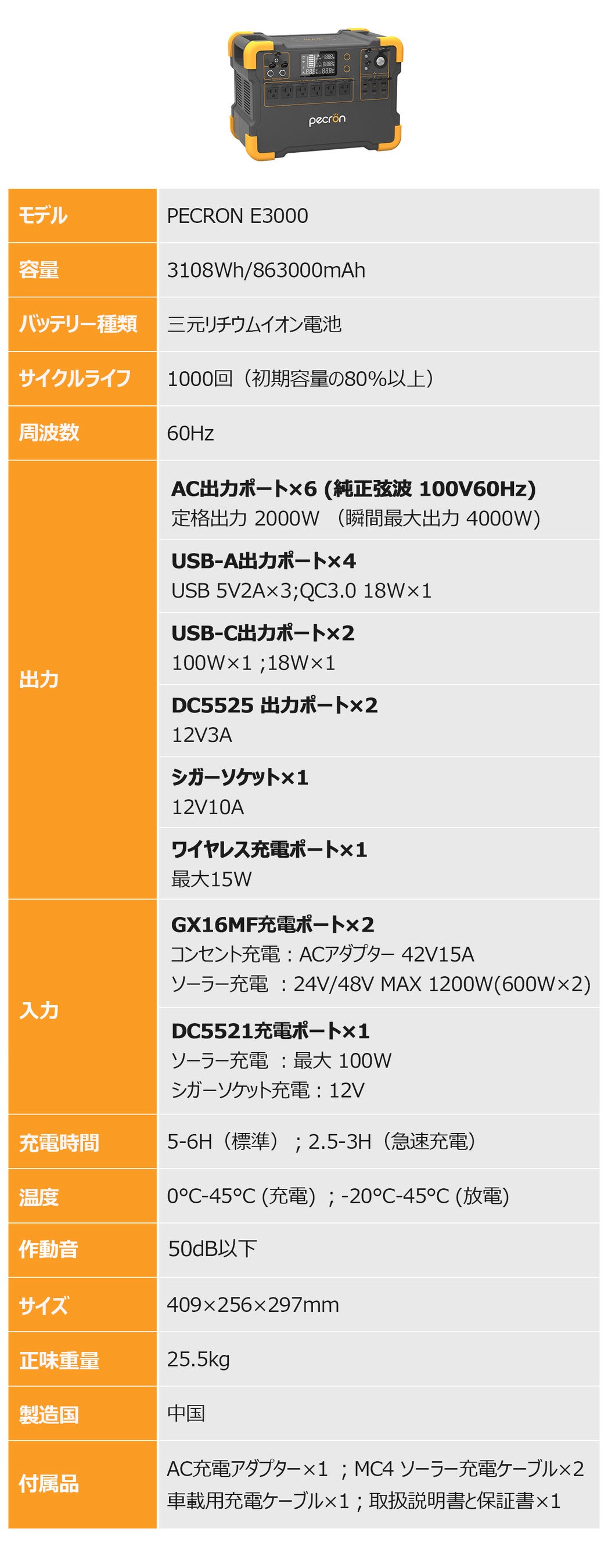 災害時・アウトドアでも大活躍!超大容量ポータブル電源「PECRON E3000」