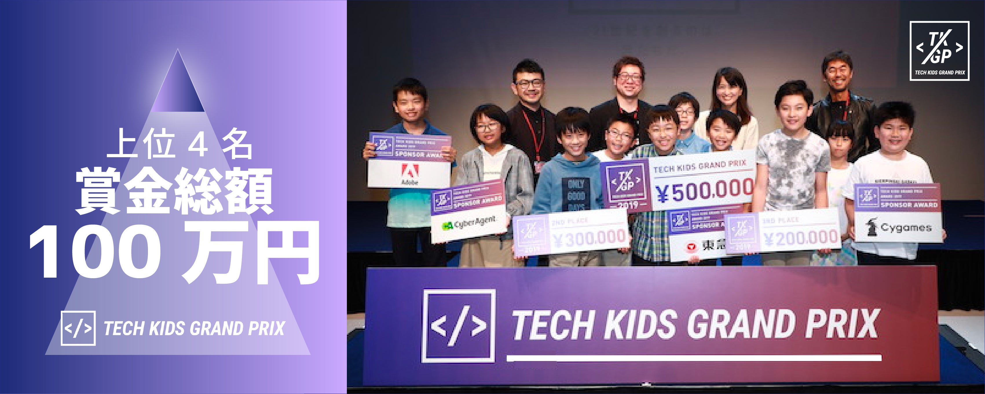 「Tech Kids Grand Prix」は、『21世紀を創るのは、君たちだ。』 をスローガンに掲げる、これからの時代を担っていくすべての小学生に向けたプログラミングコンテストです。